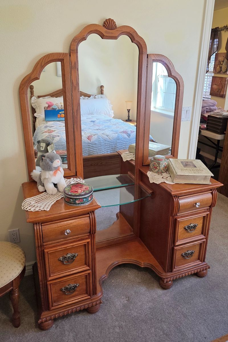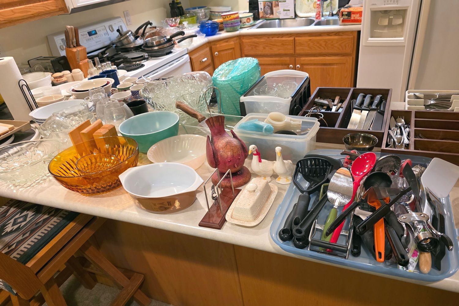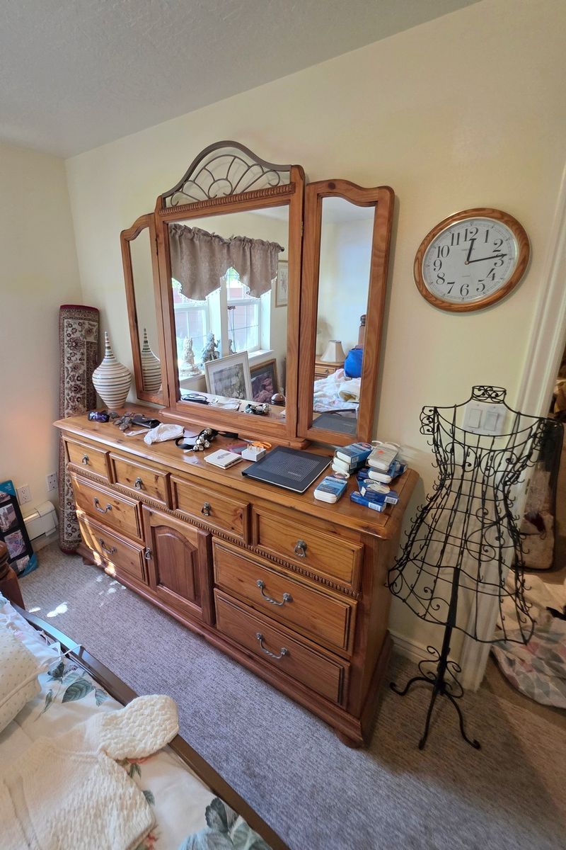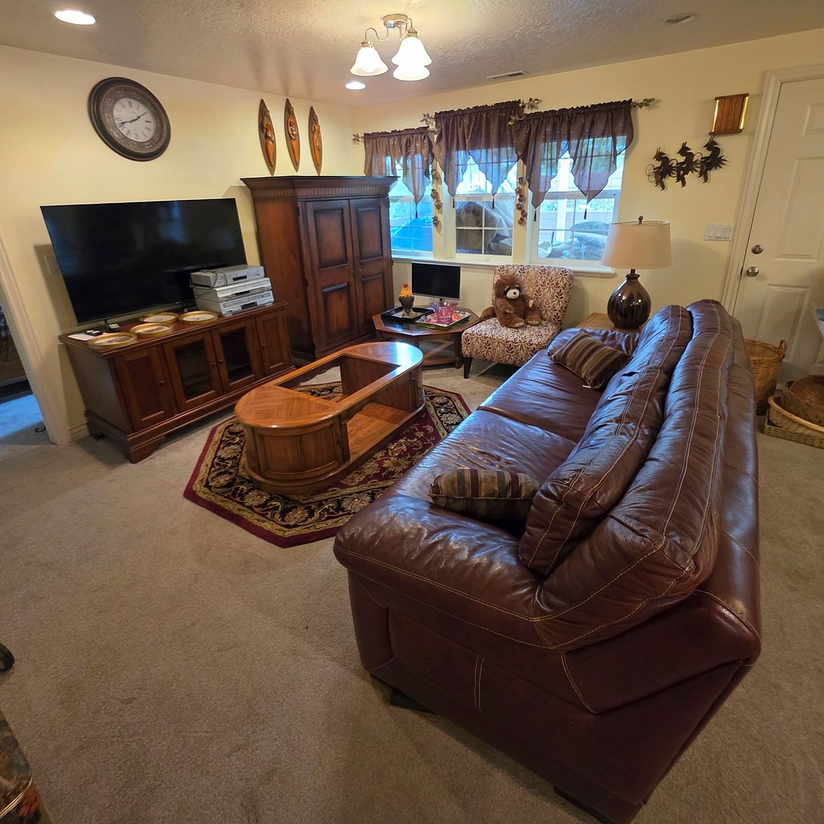You don't want to miss this Spanish Fork estate sale this weekend! It is 3 levels plus 2 garages full of great items. There is clothing, furniture, jewelry, tools, yard decor, pottery, art, washing machine & dryer, small freezer, gardening supplies, camping and fishing items, vintage clothing, wool Pendleton women's clothing, mirrors, stained glass decor and lamps, chandeliers, Pyrex, kitchen items, tons of bedding, sewing and craft supplies, yarn, office furniture and equipment, flat screen TV's, piano, display cabinets, Grandfather clock, leather chairs, lift recliner, and couches, Native American silver jewelry & hair combs, baskets, games, area rugs, Christmas Decor, antique linens, Sunburst clock, dressers, beds, cedar chests, nightstands, vintage vanities, and so much more! We didn't even include everything in the photos there is so much!