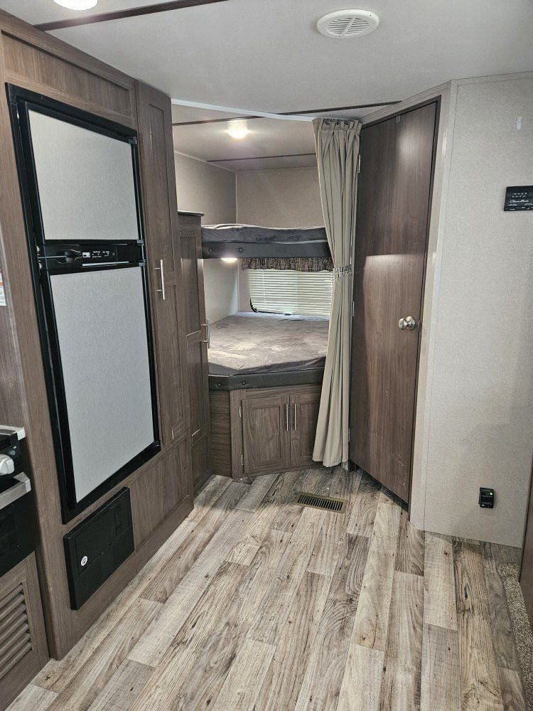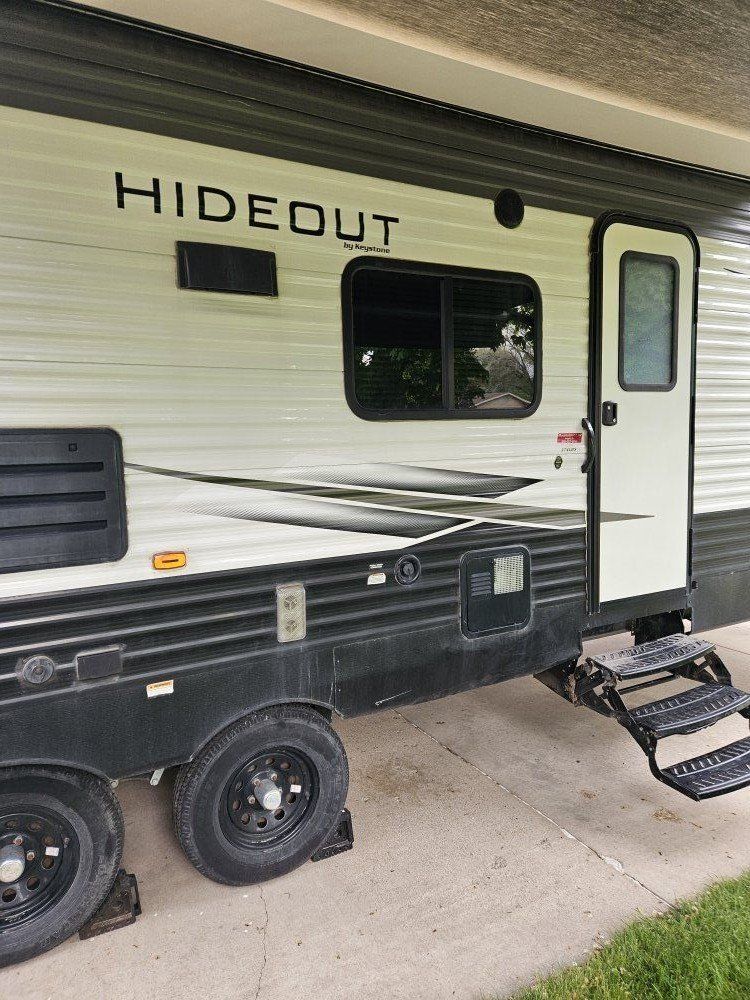 Venmo2020 27ft keystone hideout travel trailer, sleeps 8. $15,000 firm. New awning, new electric jack, new battery. Front bedroom with walk around bed two closet doors. Electric fireplace, large slide out with couch, table bed, microwave, oven, gas stove, lighted cabinets, 2 lighted bunk beds with curtains, double kitchen sink with drawers, 2 above sink cupboard, 2 standing cupboards, storage under bunk bed, storage under master bed. Full bathroom, duckted heat and a/c. On board vacuum, outdoor kitchen, audio system with outdoor speakers.