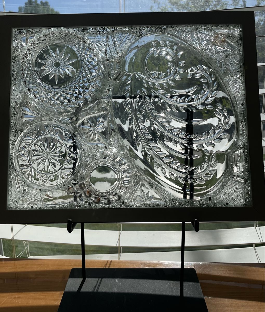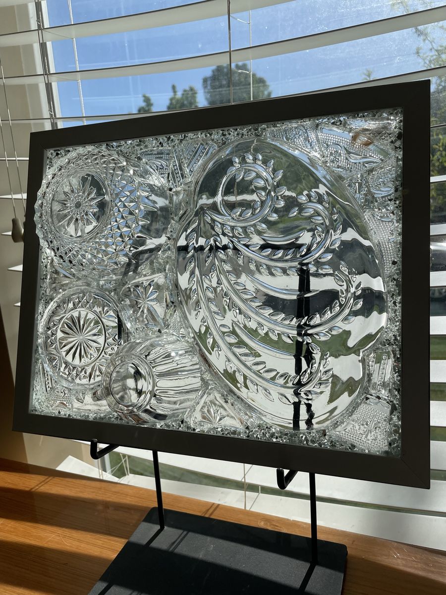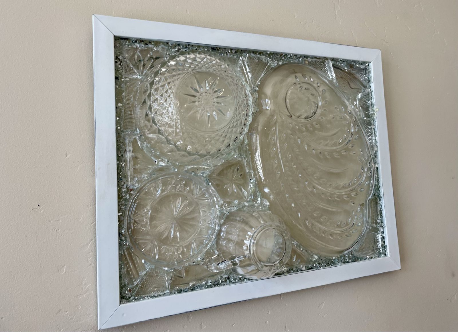 VenmoGorgeous one of a kind vintage dish preservation wall art. This stunning piece of art was handmade from precious antique dishes with broken dish mosaic & framed in farmhouse white.
