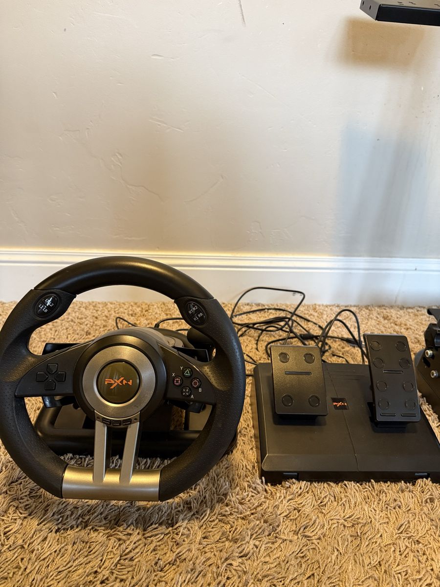 PXN V3 Pro racing sim. It’s in great condition, hasn’t been used very much at all. It works with Xbox, PlayStation, and PC on a lot of games like Forza and GTA. Moving and don’t have room to take it with me. It will come with the stand as well. $100 obo