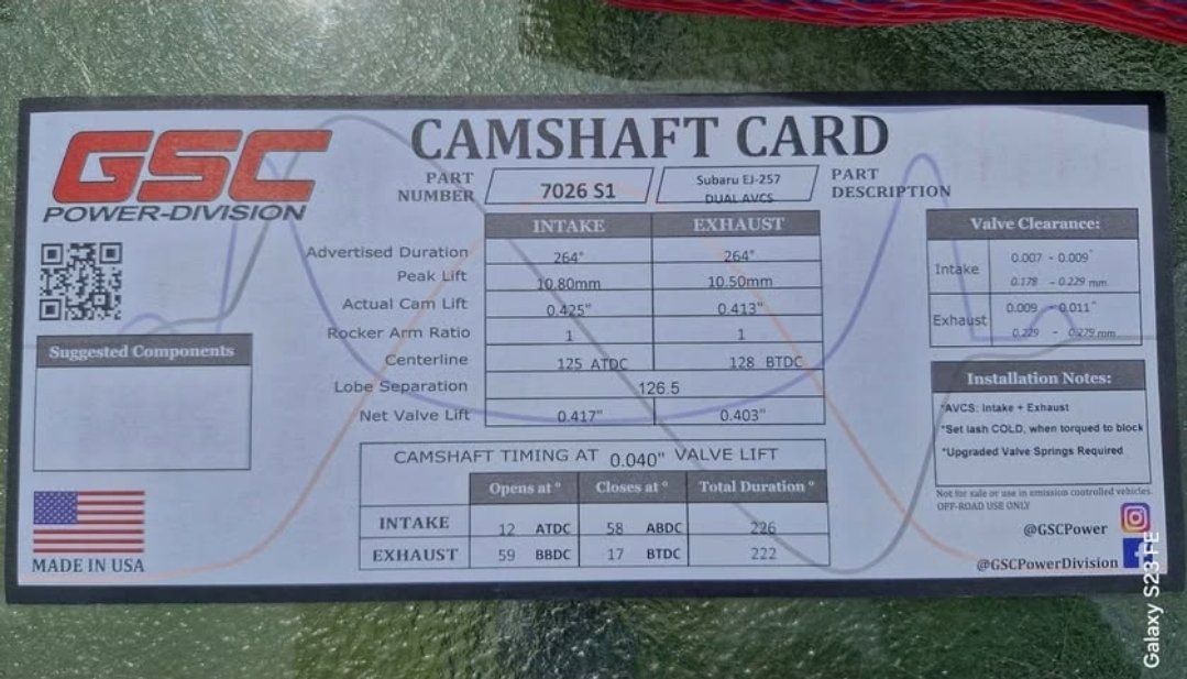 VenmoSelling GSC Power-Division S1 camshafts for Subaru EJ257 with Dual AVCS.