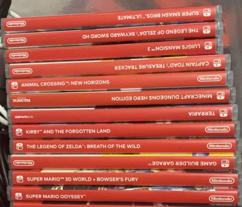 ——-$40———- Metroid dread Animal crossing: new horizons Pokemon let’s go Eevee Zelda skyward sword HD ——-$35———- Super Mario 3D World +Bowser's Fury Kirby and the Forgotten Land Mario kart 8 deluxe Yoshi’s crafted world Zelda breathe of the wild Splatoon 3 ———$30———- New Super Mario Bros U Deluxe Super Mario Odyssey Super Mario Maker 2 Luigi's Mansion 3 Paper Mario: The Origami King Super Mario Party Captain Toad: Treasure Tracker ———-$25———— No man’s sky Tony hawk’s pro skater 1+2 ———$20———— Terraria Minecraft Dungeons [Hero Edition] Game Builder Garage Minecraft for Nintendo switch ———$15——- Mortal kombat 11 ————$10——- Cars 3: Driven to win Mario + Rabbids Kingdom Battle