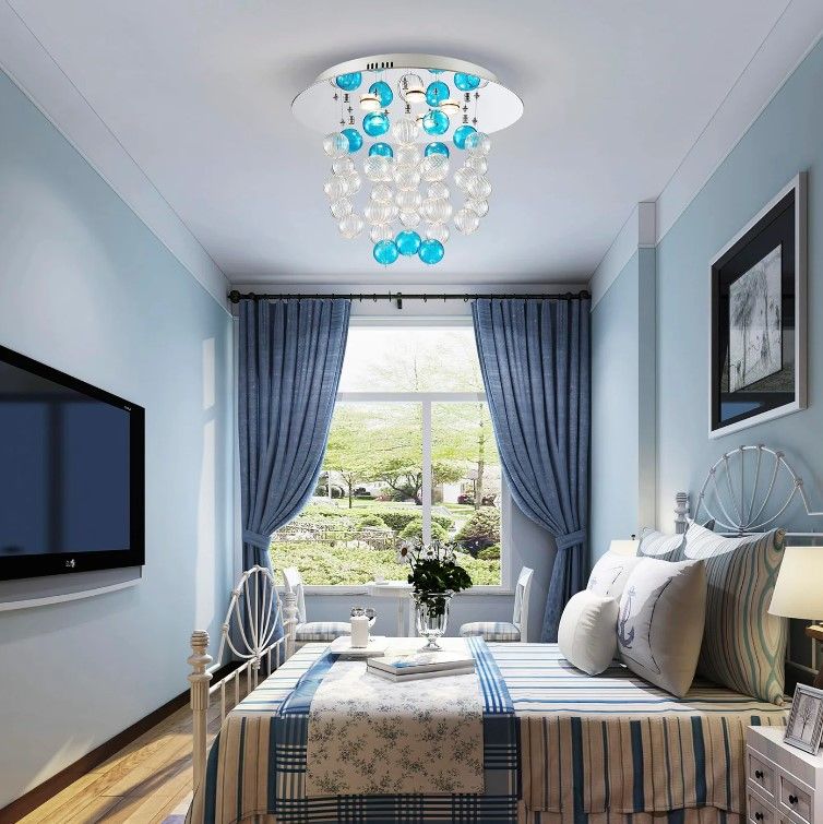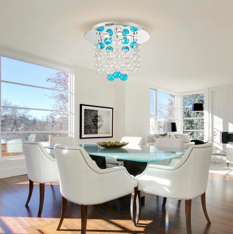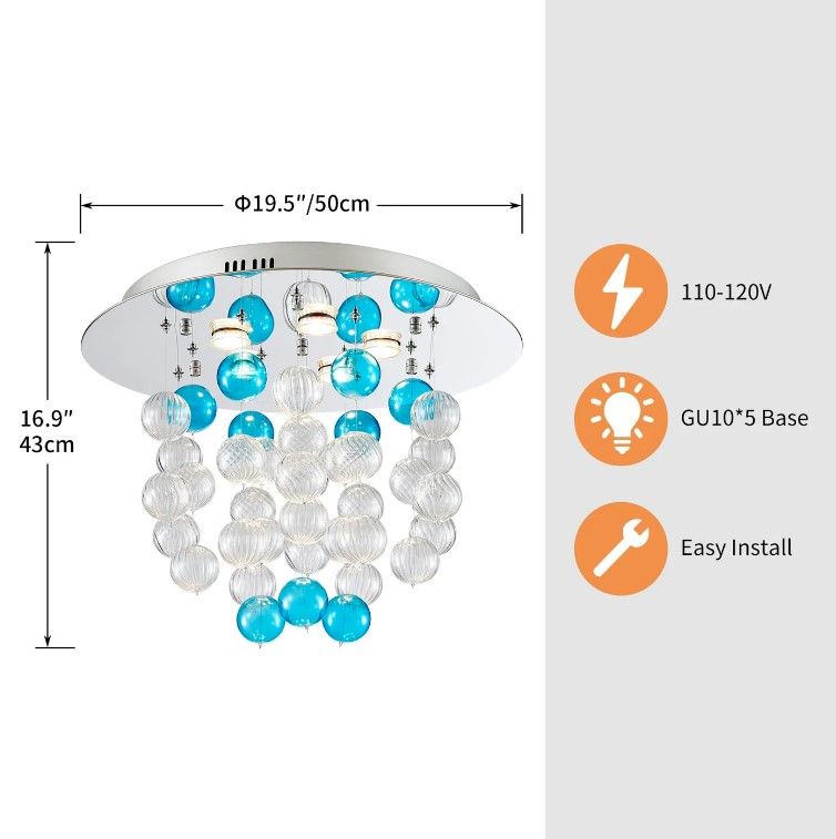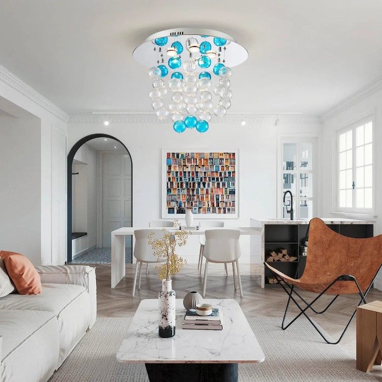 ApplePaySM Saint Mossi Bubble Chandelier - Modern Blue Ceiling Light, D19 x H17, Glass & Chrome, 5 GU10 Sockets, Clear & Blue Lampshade