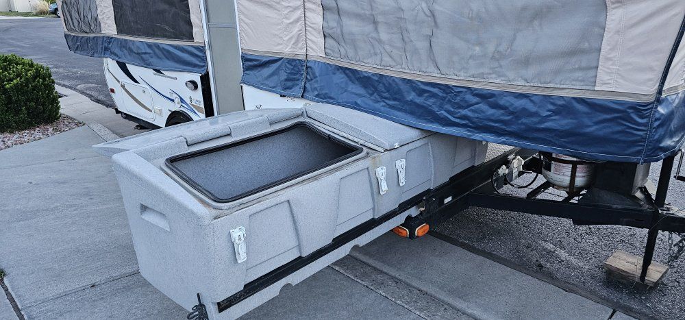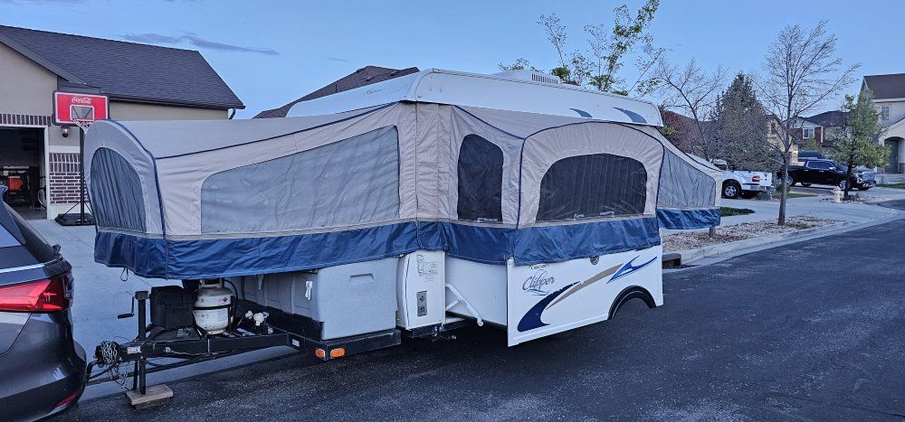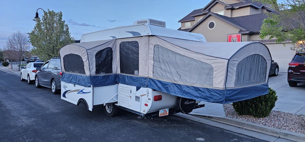 Roof A/C installed – works great NEW battery installed Electric lift system – opens and closes with a push of a button (no manual cranking) Clean and well maintained No leaks, no issues Sleeps up to 6–7 people (King & Queen beds) Slide-out dinette for extra space Kitchen with stove, sink, and refrigerator Portable toilet (cassette potti) Shower setup / outside shower Furnace, water system, and electrical all working Lightweight and easy to tow