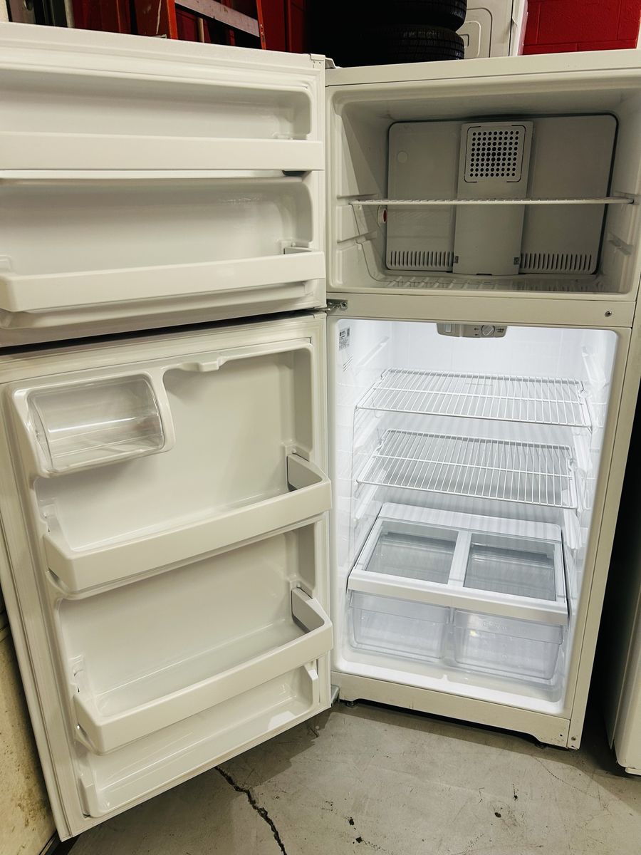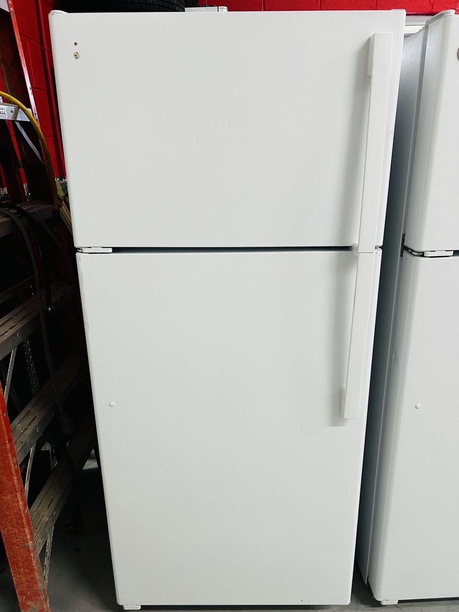Ge fridge 16.6 cu ft adjustable wire shelves crispers butter bin gallon size door bins etc.. Works great, clean, 45 day warranty, delivery/installation available. W 28” D 29 1/2” H 64 1/2”
