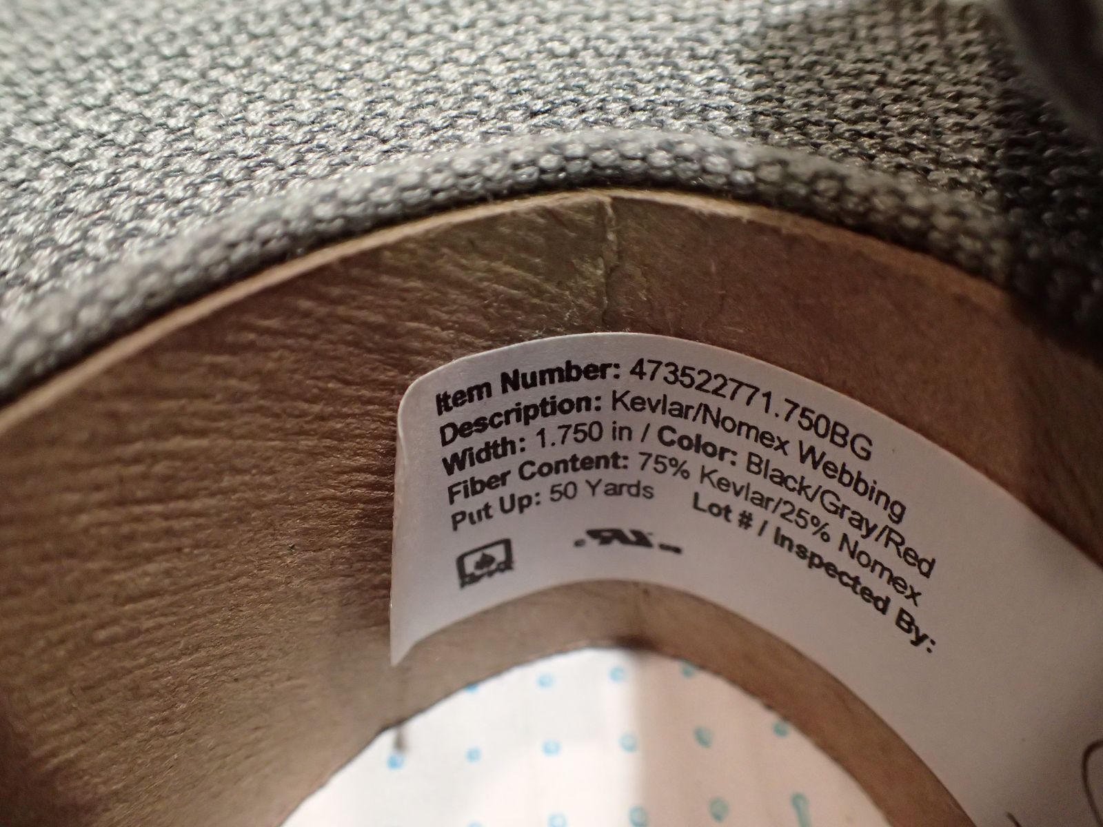 OTEX Item Number: 473522771.750BGDescription: 1.750" Black/Gray/Red Kevlar®/Nomex® WebbingFiber Content: Kevlar®, Nomex®Product Attributes: Flame Resistant/Retardant, Arc Flash Resistant, High Tensile StrengthUL Model #: 70-4735-2277-1.750BGStandards, Certifications, Compliancy: NFPA 1951, NFPA 1971, NFPA 1975, NFPA 1977, NFPA 2500, NFPA 2112, Arc Flash RatedBerry Amendment Compliant