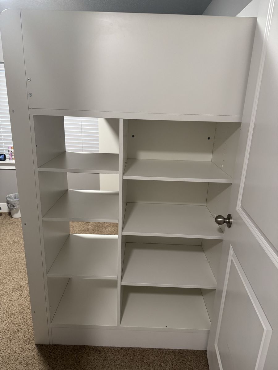 VenmoIKEA Loft bed in good condition. Has desk and lots of cubbies for storage. See pics for dimensions. Is sturdy and works well. Does have a few scratches and dings but looks really good overall. It is partially disassembled to move so it will need to be assembled (pretty easy). Will include mattress if wanted. Sells for $700 from Ikea. Asking $150. Message if interested. Please no generic is it available messages.