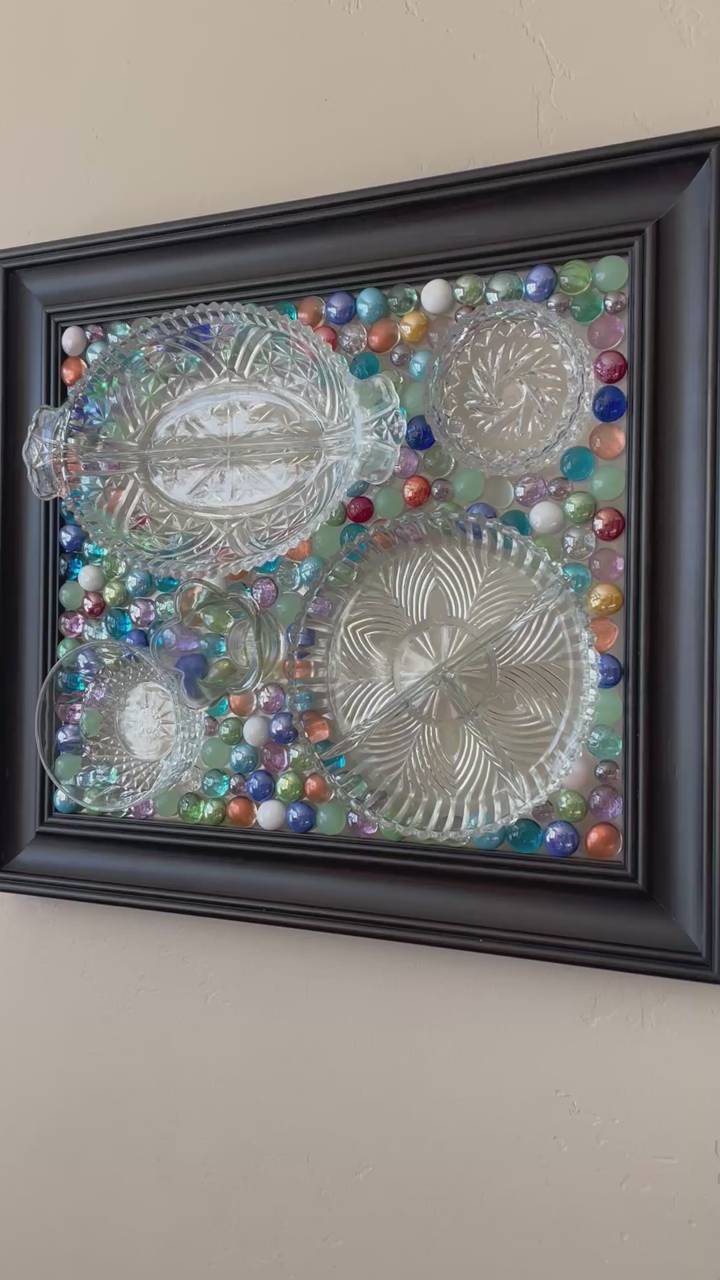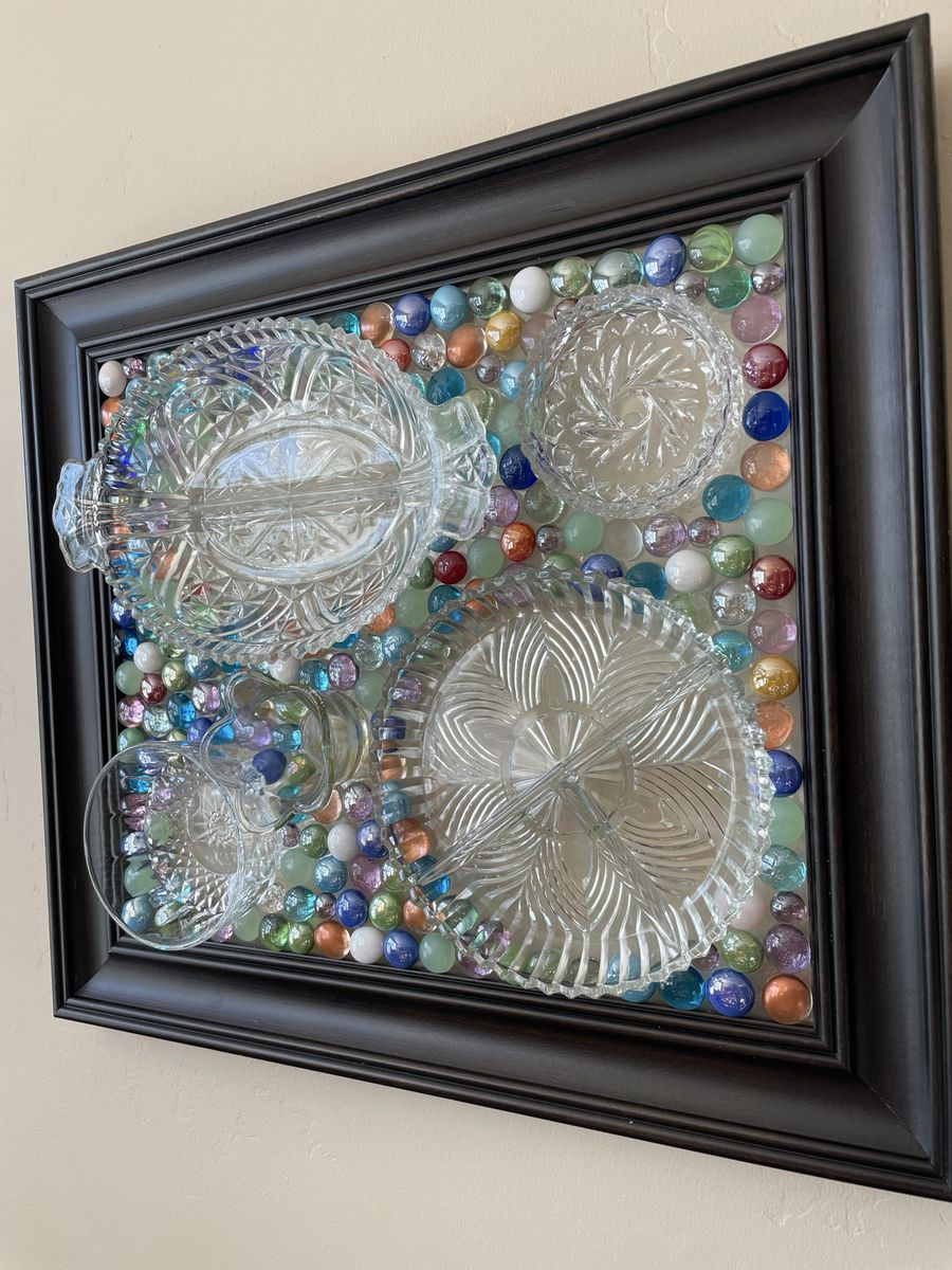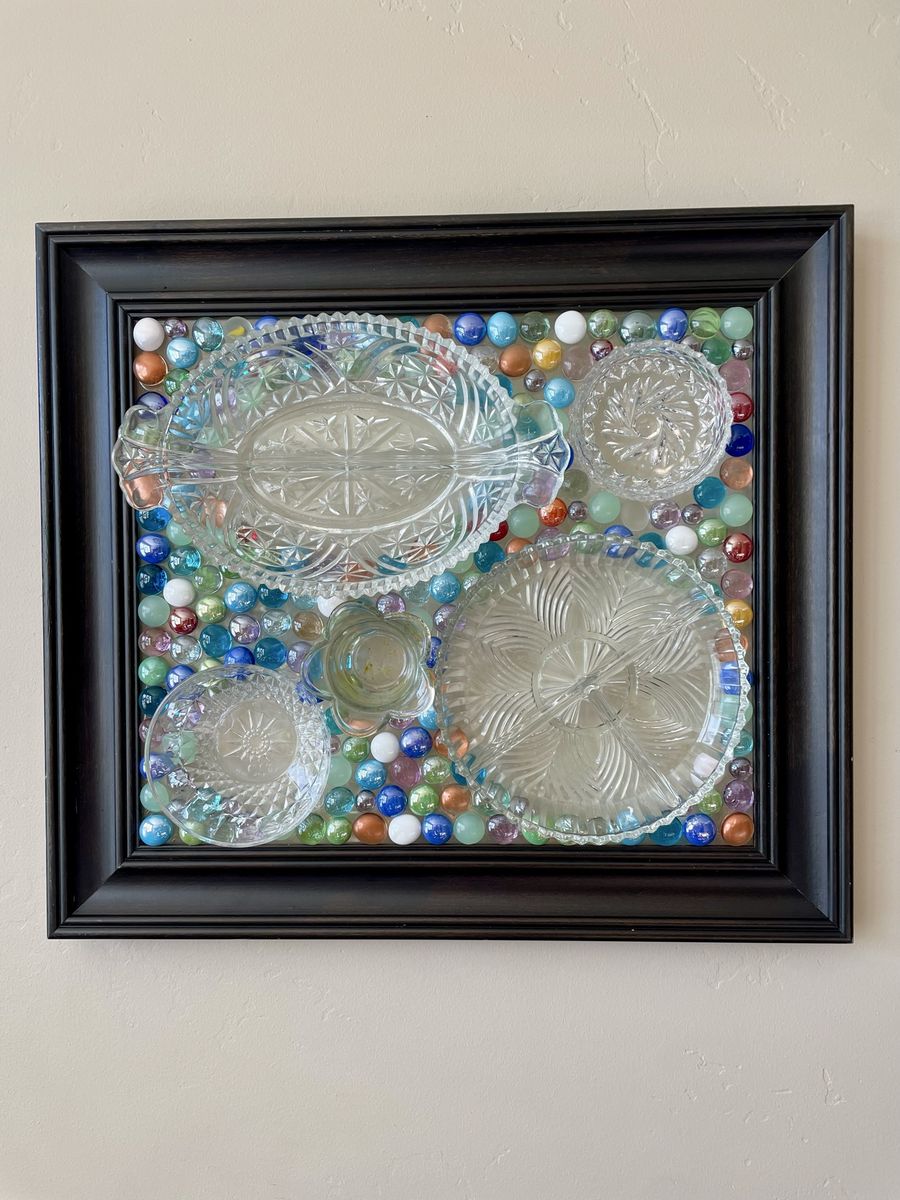 VenmoGorgeous one of a kind vintage dish preservation wall art. This stunning piece of art was handmade from precious antique dishes with colorful glass beads & framed in espresso brown.