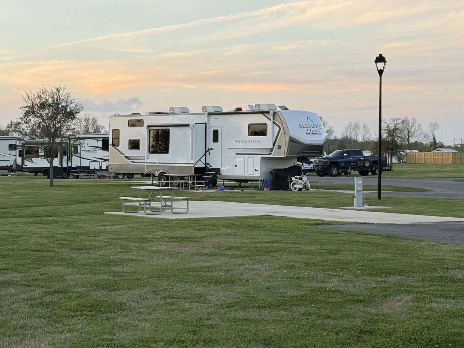 This one is set up the right way with a washer and dryer already installed (not just prepped) and an onboard generator so you can camp without hookups when you want. I’ll also include the 5th wheel hitch for free so you’re ready to go.