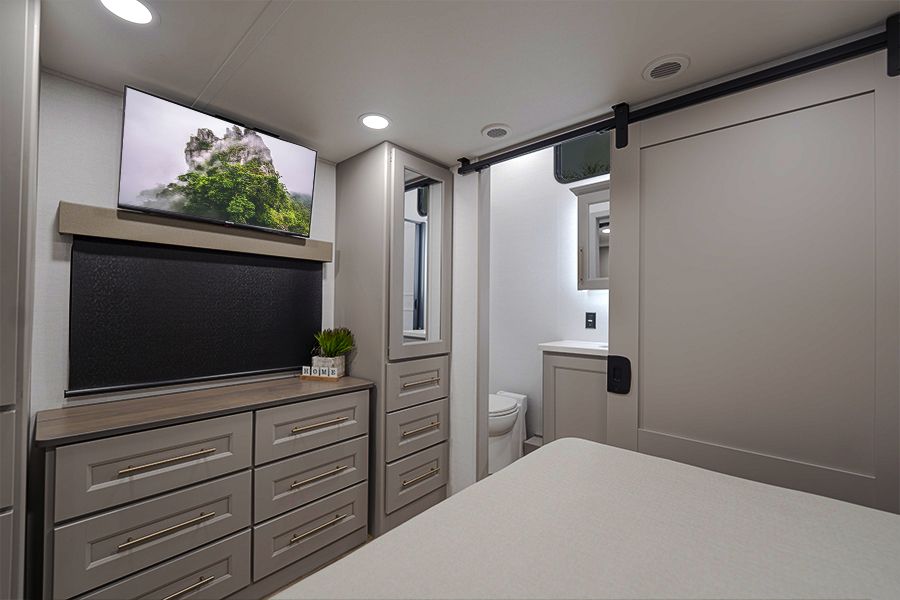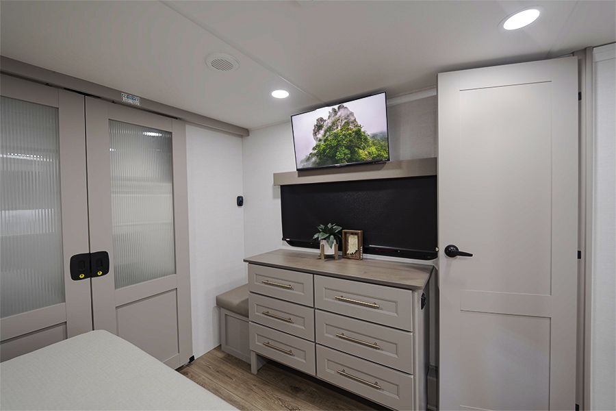 This is basically a luxury condo you can tow anywhere. If you’ve been looking at these, you already know the 395DS is one of the few fifth wheels that actually feels like a real home, not just a camper.