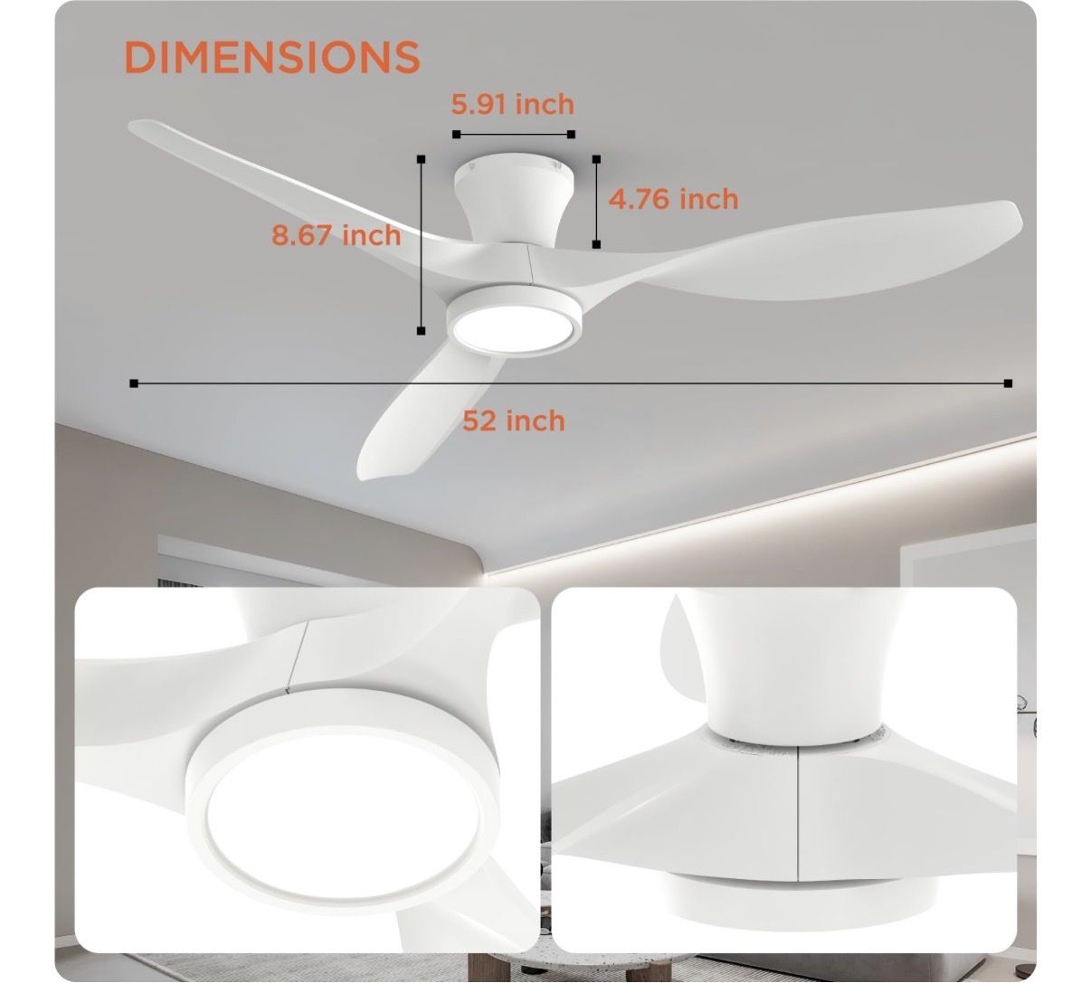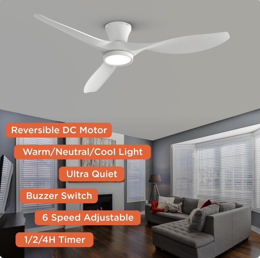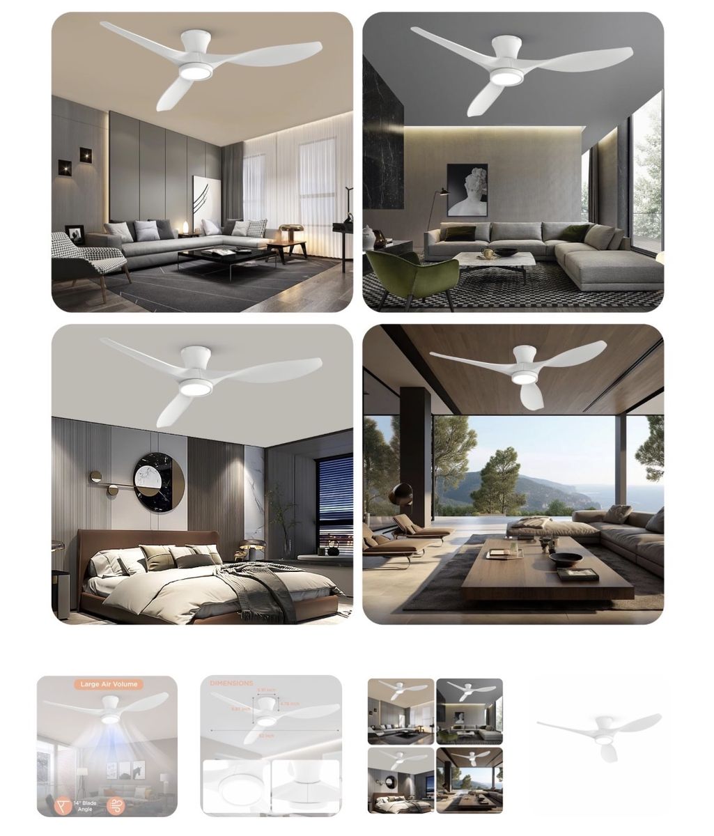 TALOYA 52 inch Ceiling Fans with Lights Remote Control, Modern Low Profile Ceiling Fan with Quiet Reversible DC Motor for Bedroom Living Room and Patio White