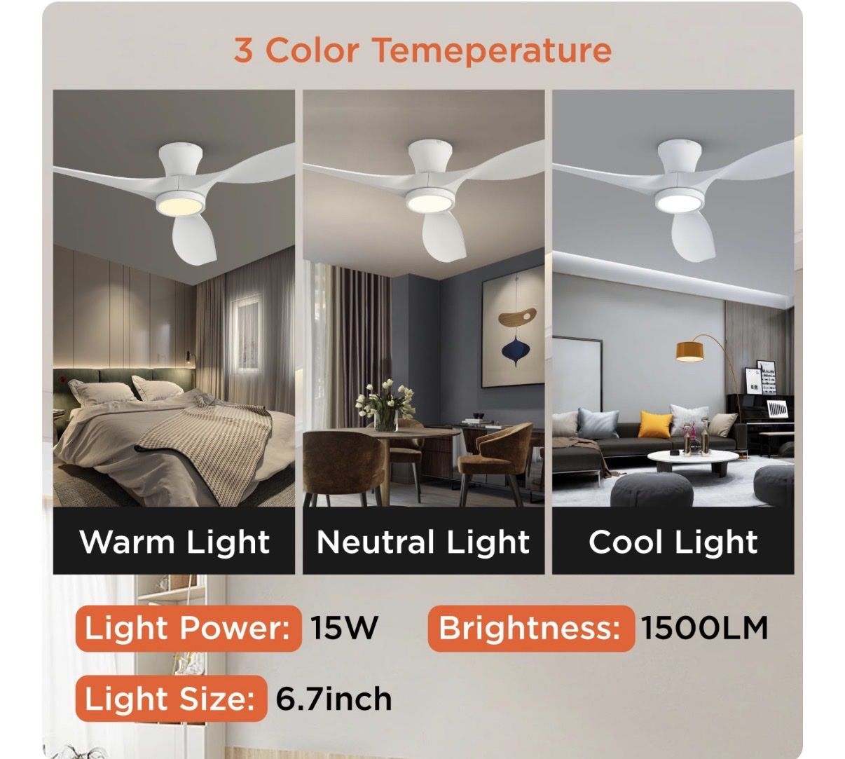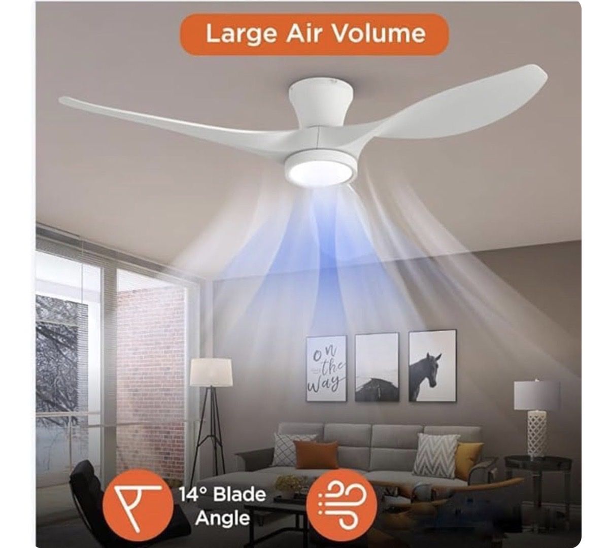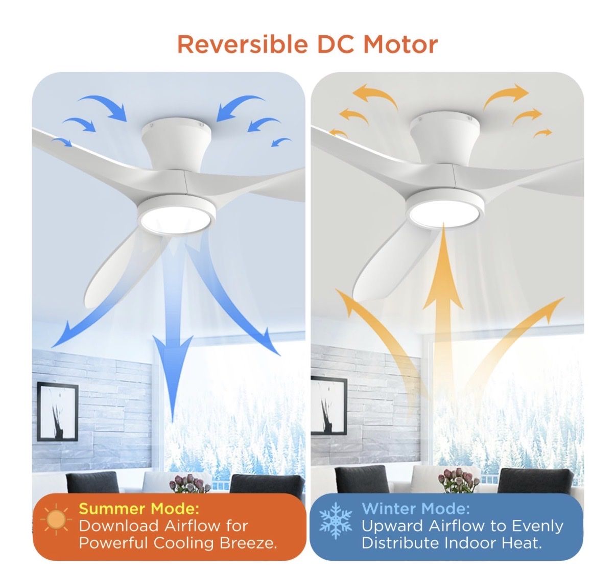 TALOYA 52 inch Ceiling Fans with Lights Remote Control, Modern Low Profile Ceiling Fan with Quiet Reversible DC Motor for Bedroom Living Room and Patio White