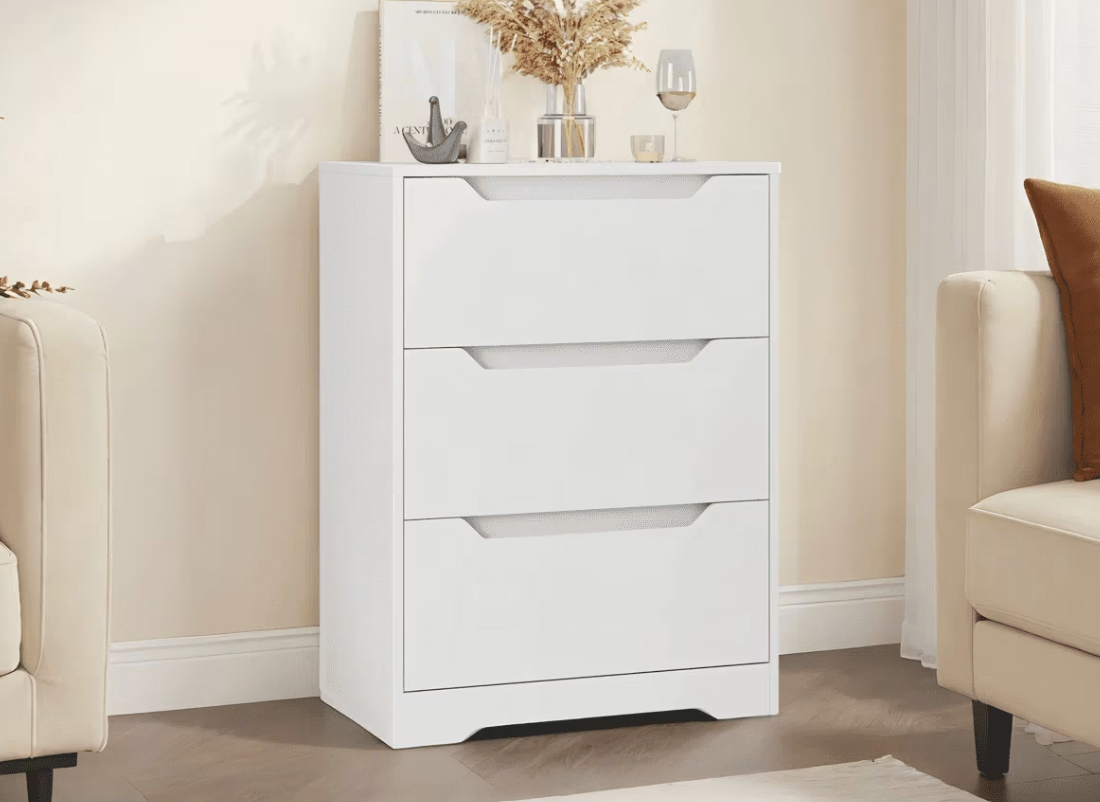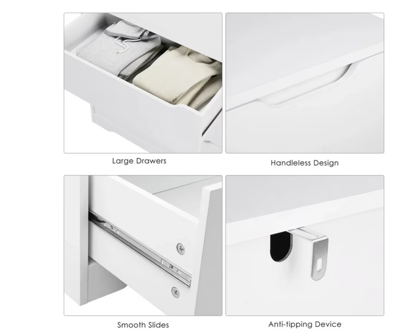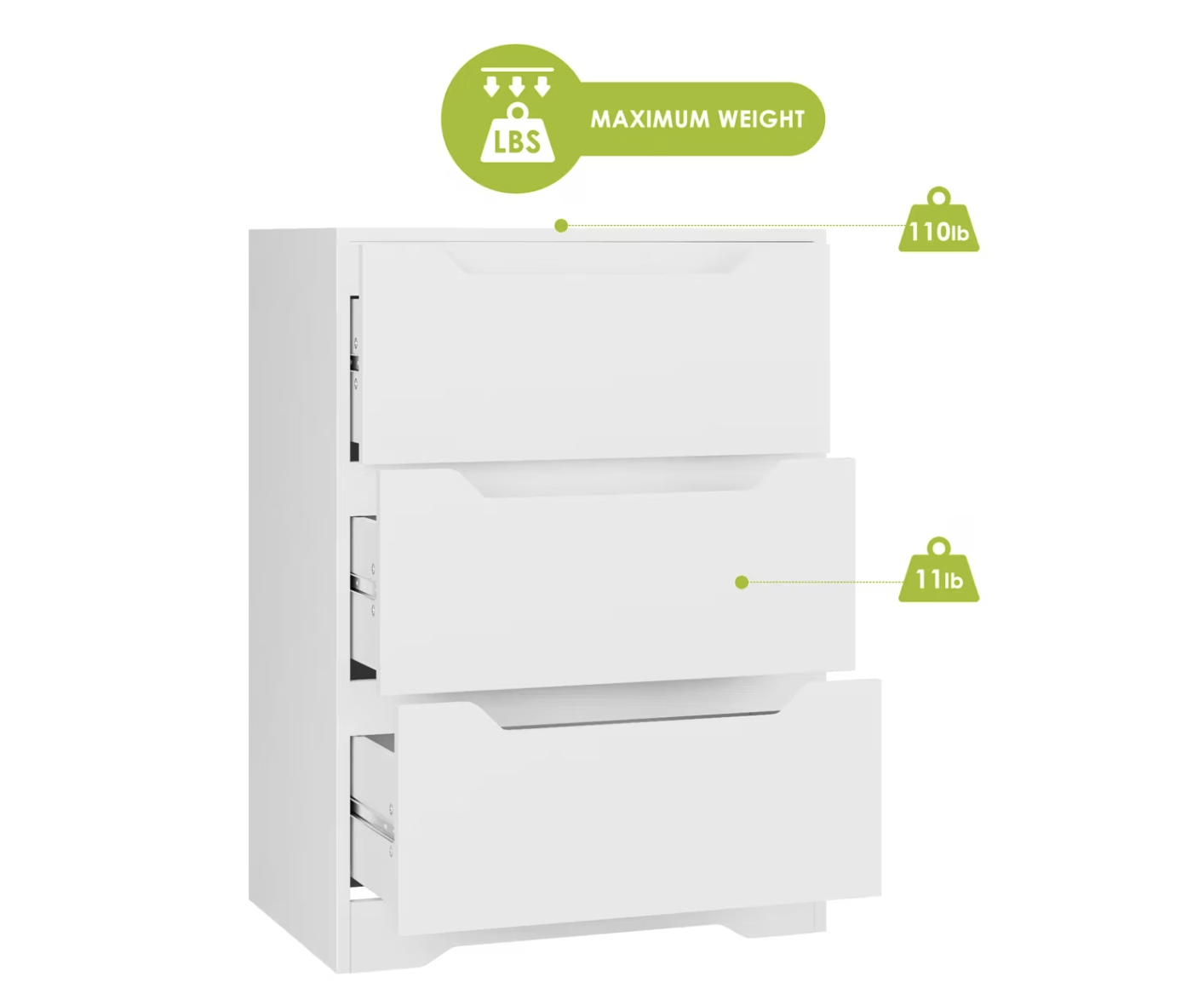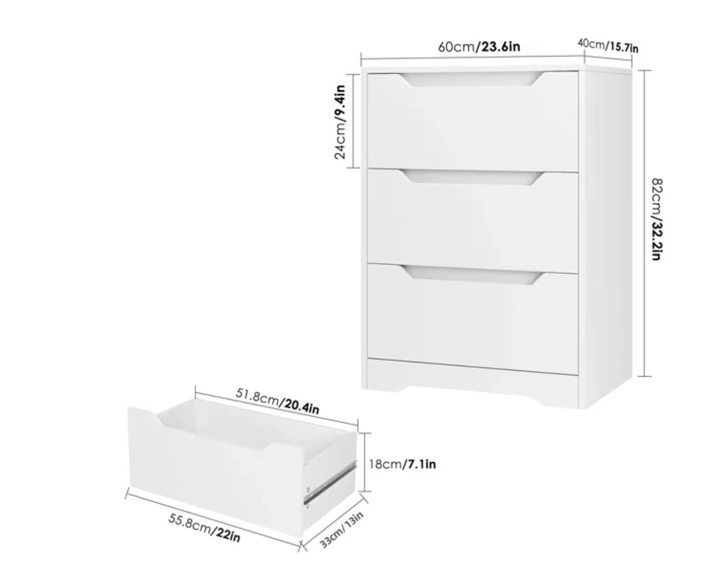 Brand new in box, 3 Drawers White Dresser, 23.6'' W Nightstand Chest of Drawer with Cutout Handles