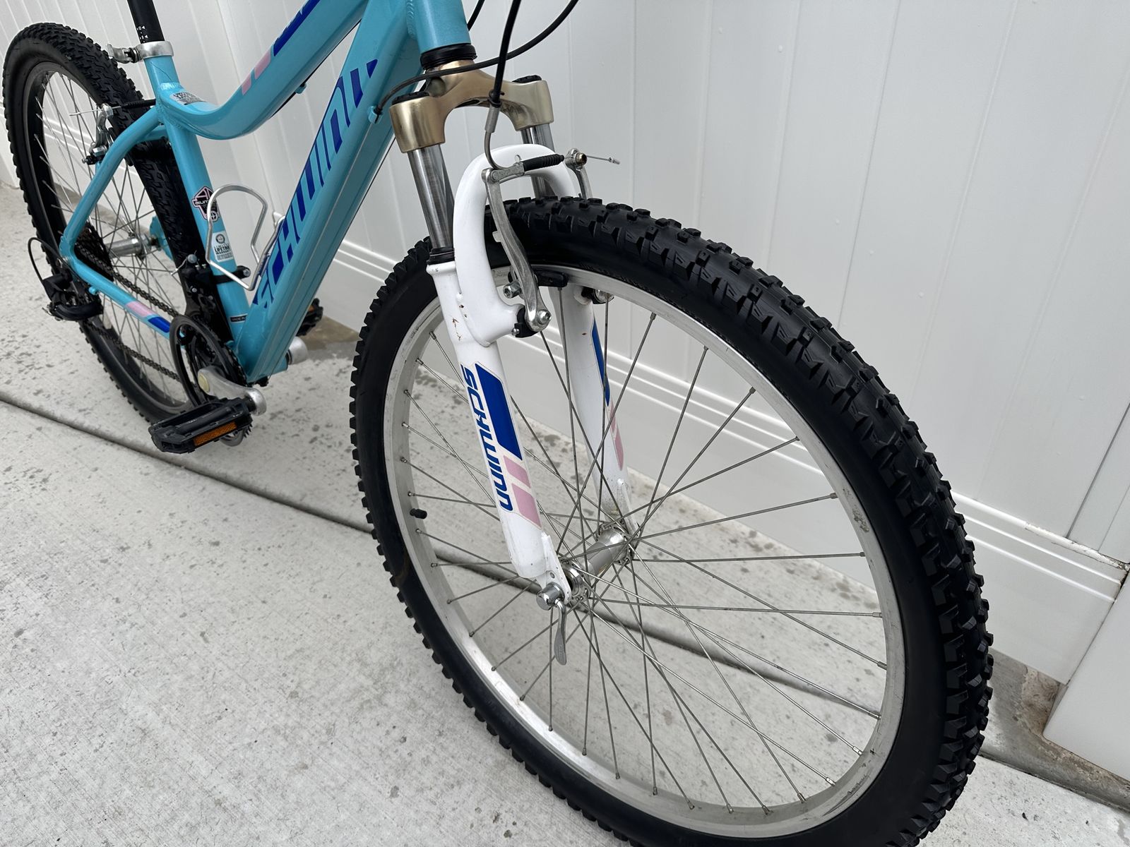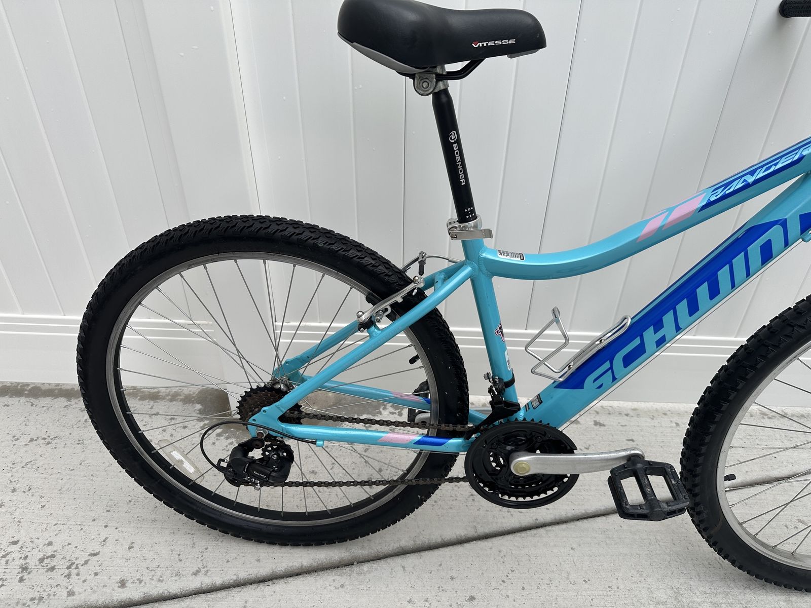 Venmo26’’ Schwinn Ranger bike, Frame : aluminum 21 speeds Front suspension New inner tube New seat Quick-adjust seat Quick-release front and rear wheels Condition : good shape Color : blue with white fork Wheel : 26” tires hold air very well Ready to use / no need manteinance The bike is very clean. ——- I accept Venmo and cash