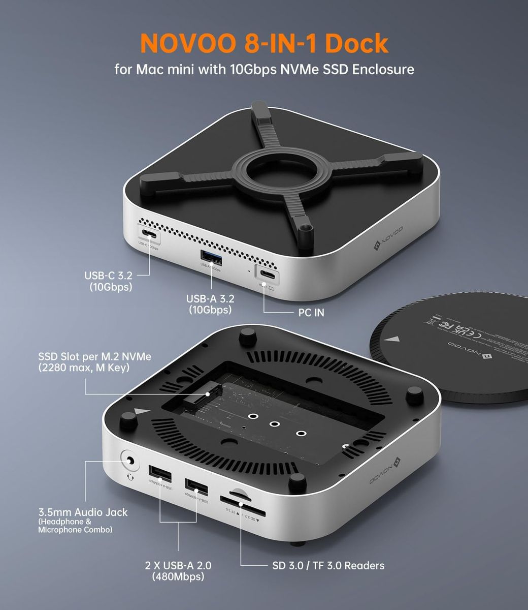 VenmoUpgrade your workspace with NOVOO mac mini m4 dock, designed for Mac mini M4 and M4 Pro (2024), expanding up to 8TB NVMe SSD with 10Gbps speed—ideal for users seeking faster storage, seamless workflows, and a cleaner desktop setup.