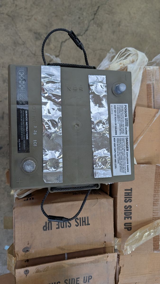 These are brand new featuring the original factory silver seals over the vent caps and terminals.