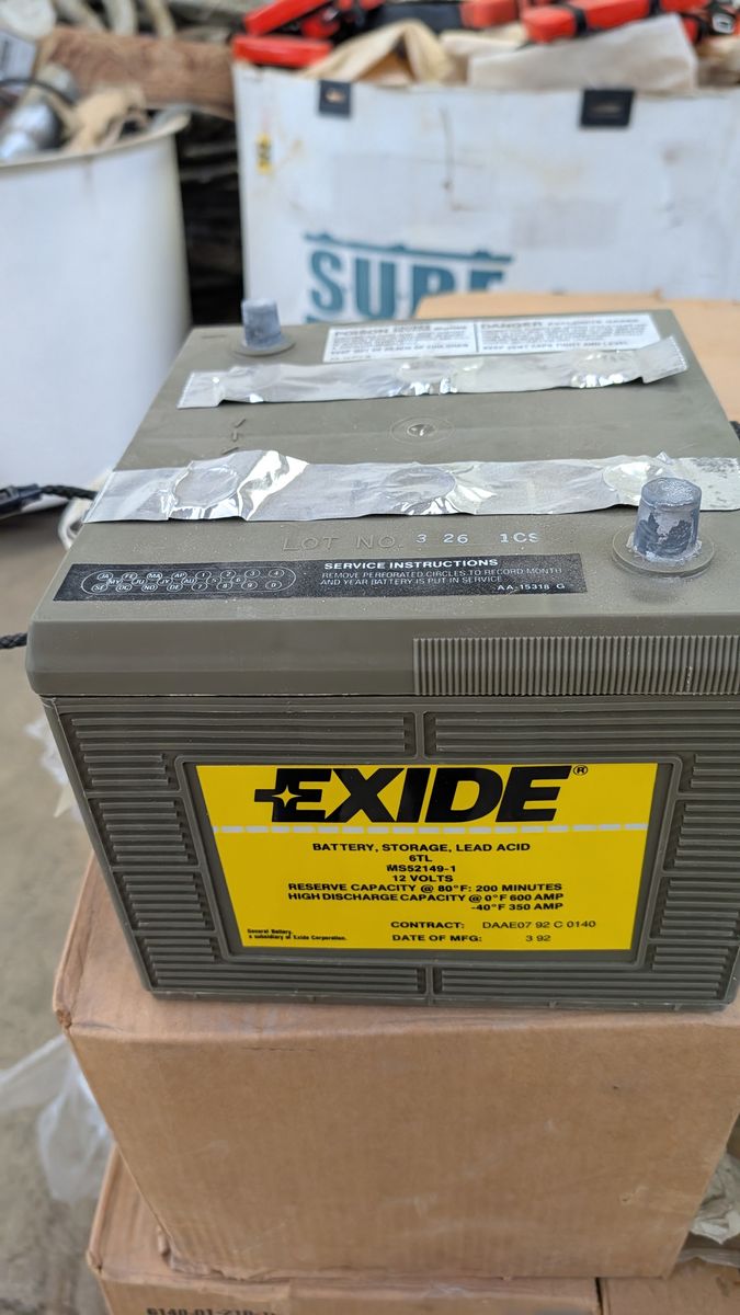 ZelleBrand New Never Used Exide 6TL Military Storage Battery, Part Number MS52149-1. This is a rugged, heavy-duty 12V lead-acid battery typically found in military vehicles like HMMWVs and tanks.