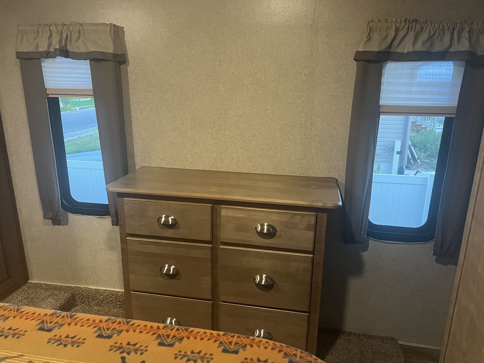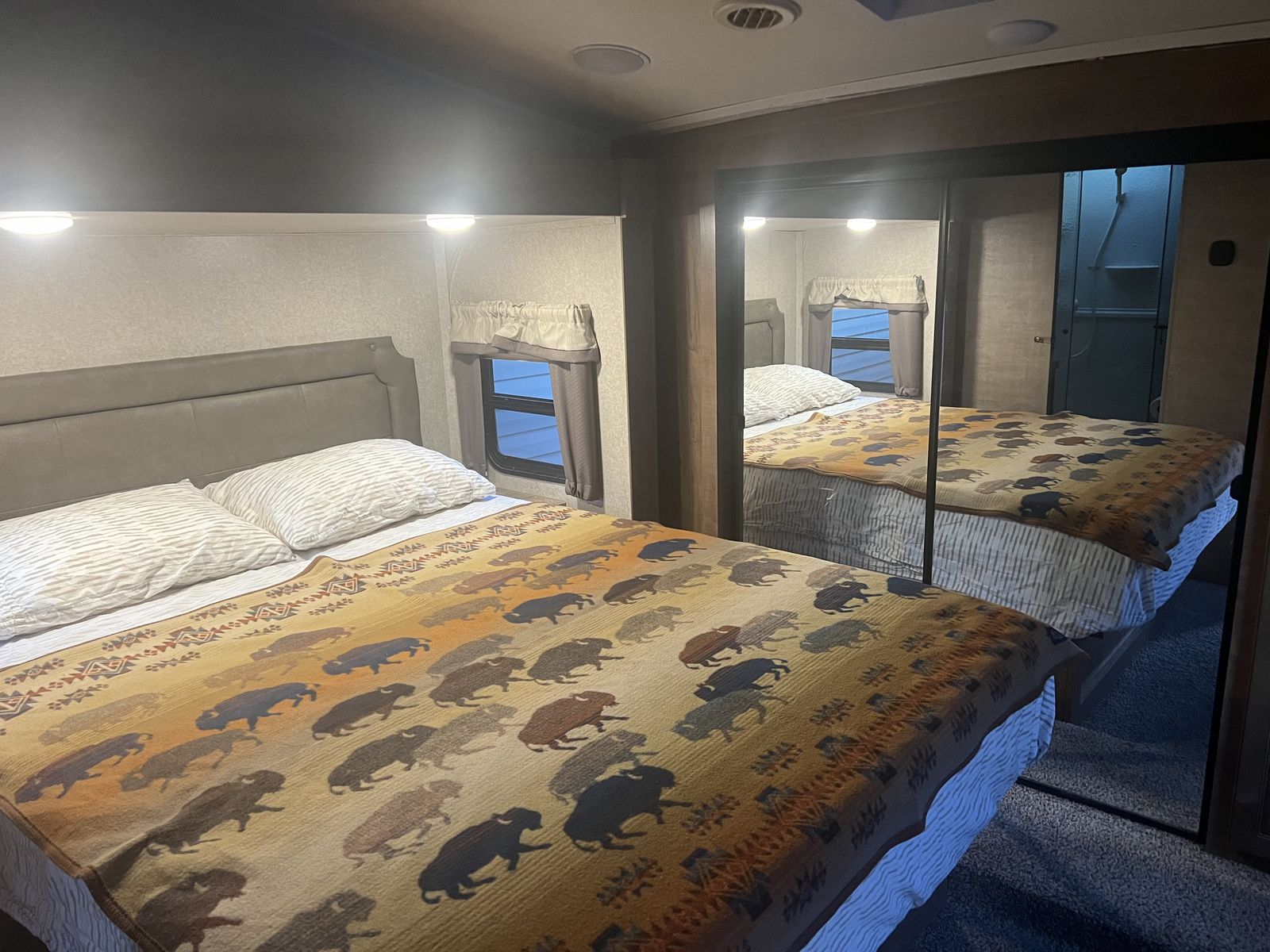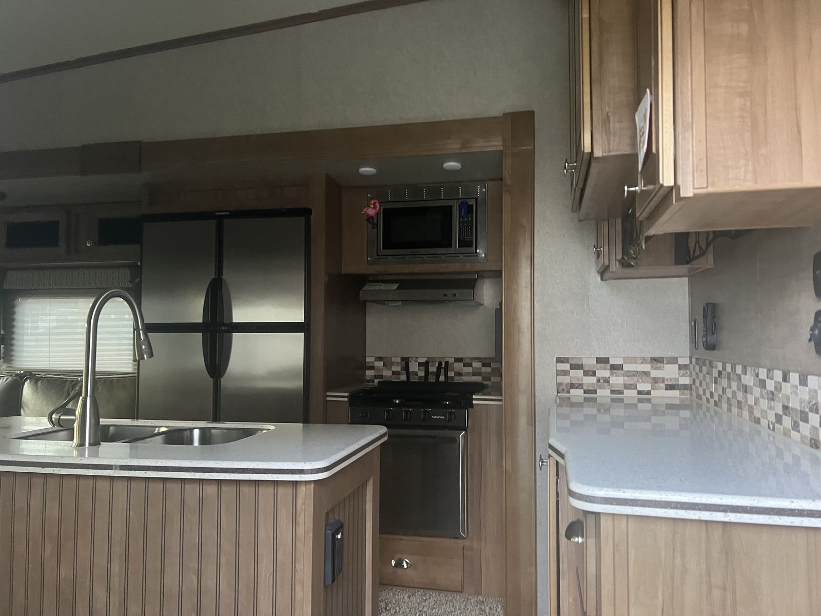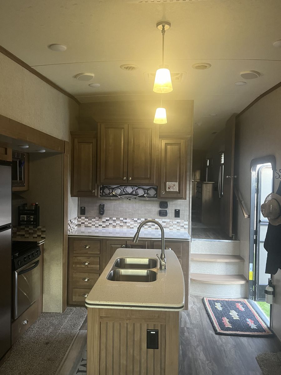 This model has one of the best layouts with a rear kitchen and large living space, making it feel much bigger than most fifth wheels in this size/weight class.