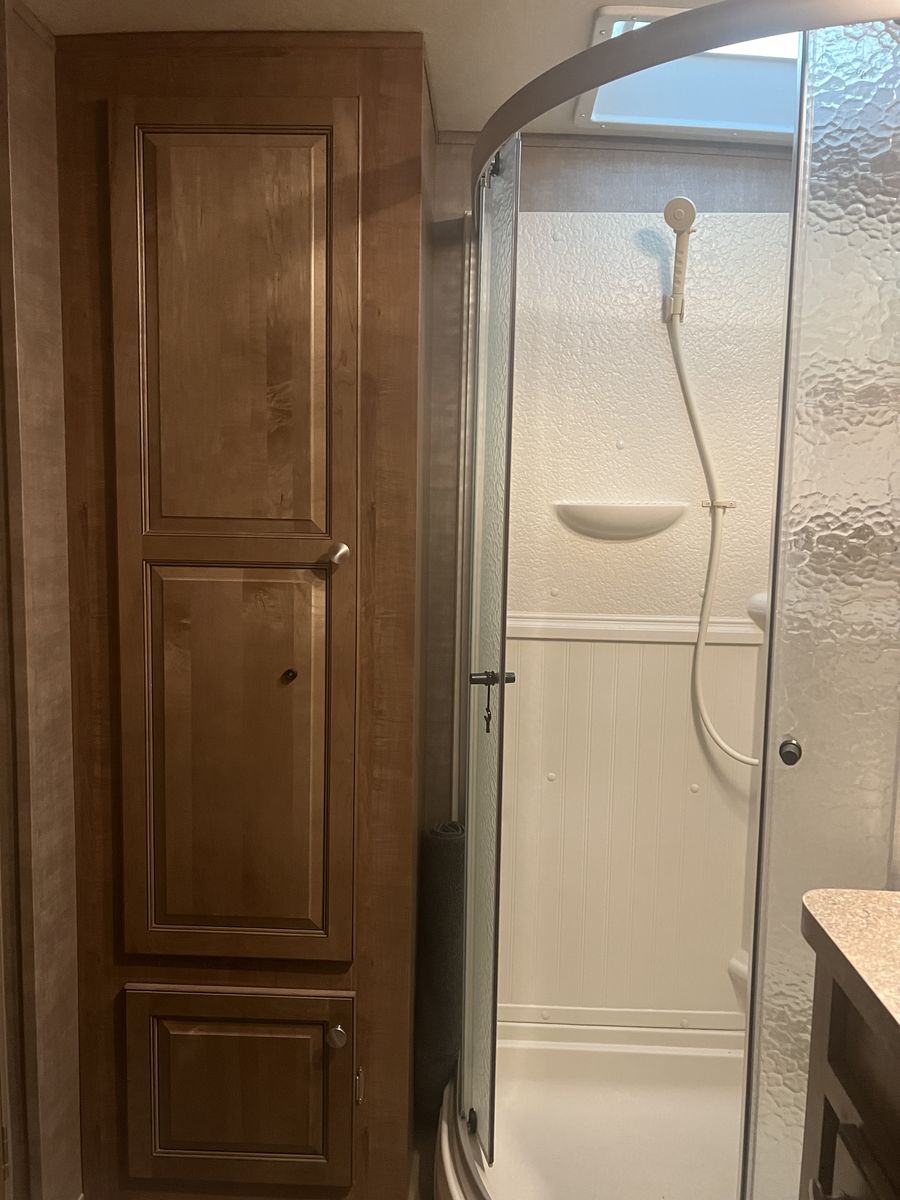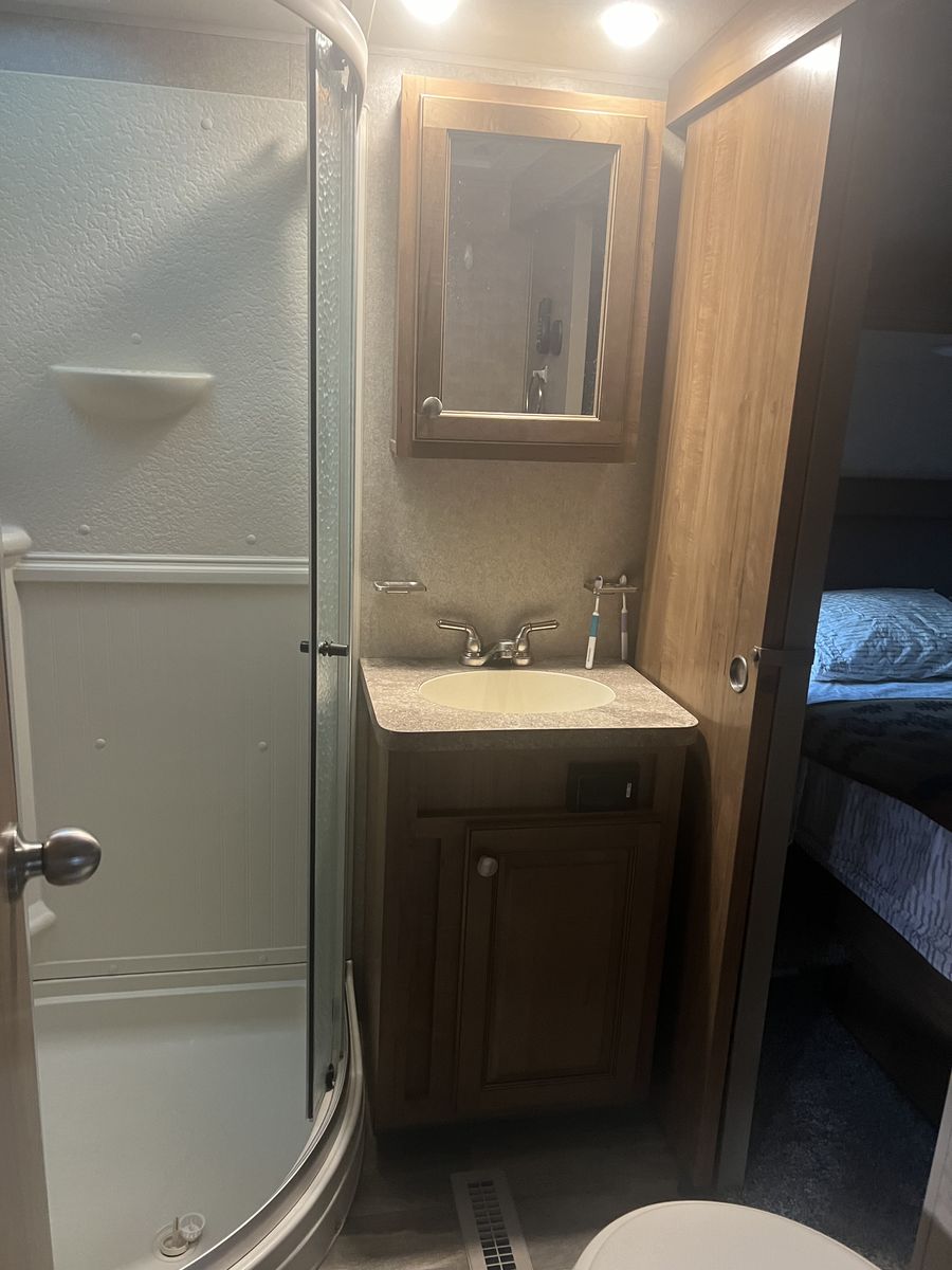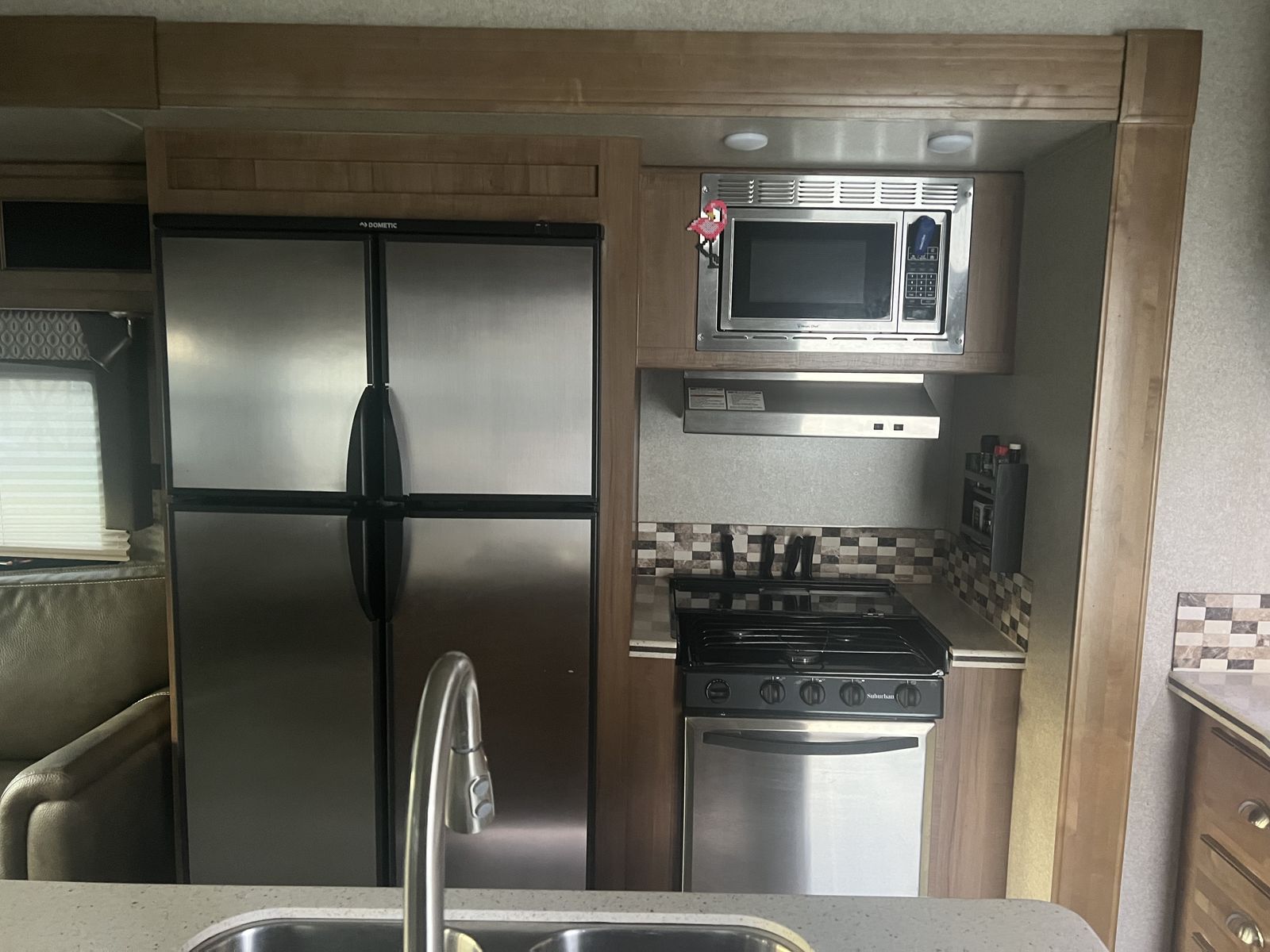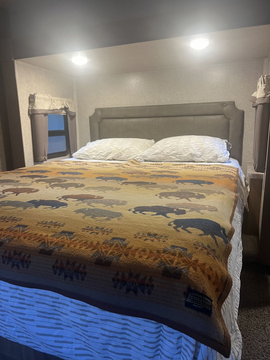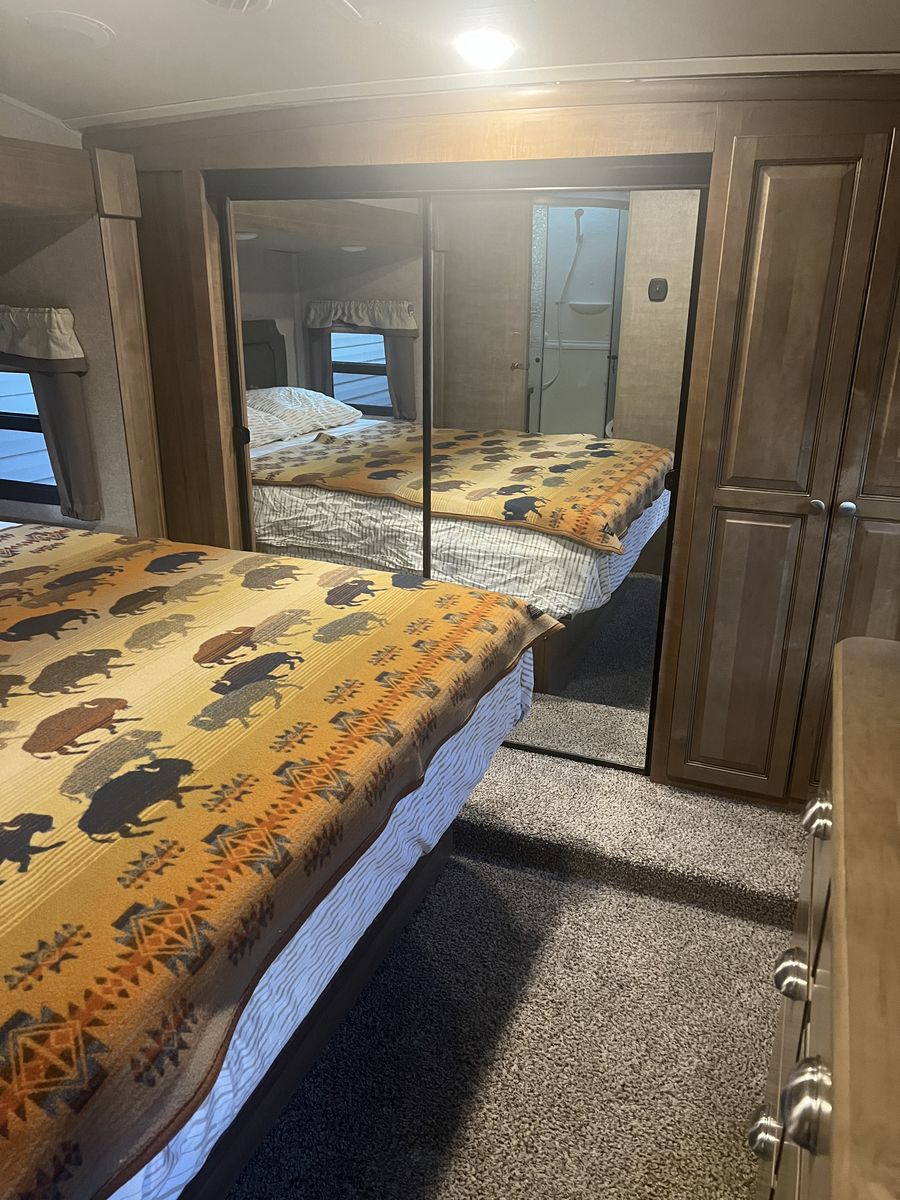 This model has one of the best layouts with a rear kitchen and large living space, making it feel much bigger than most fifth wheels in this size/weight class.