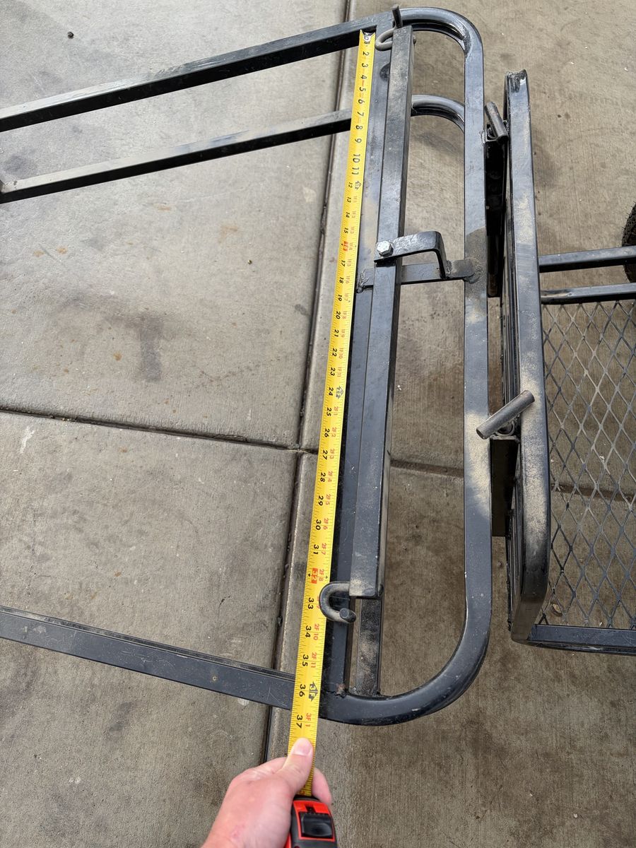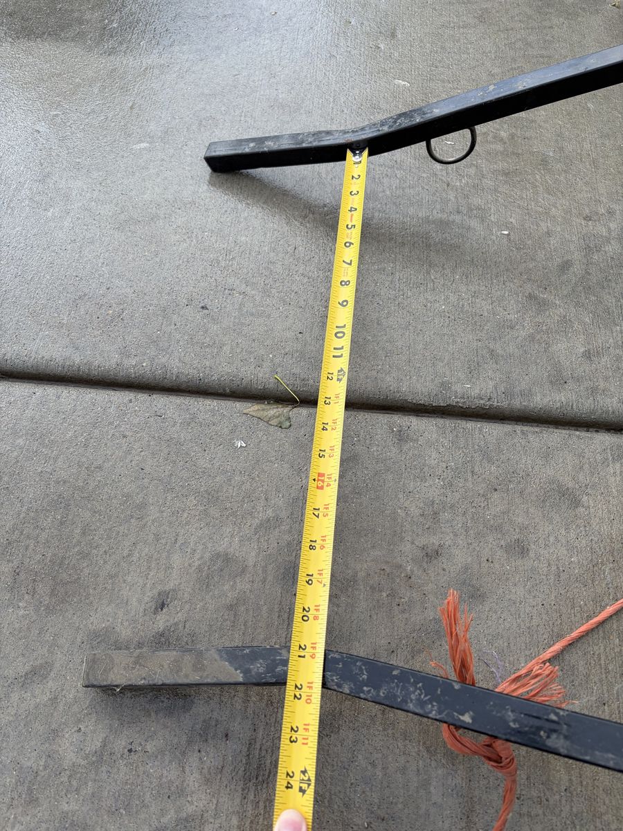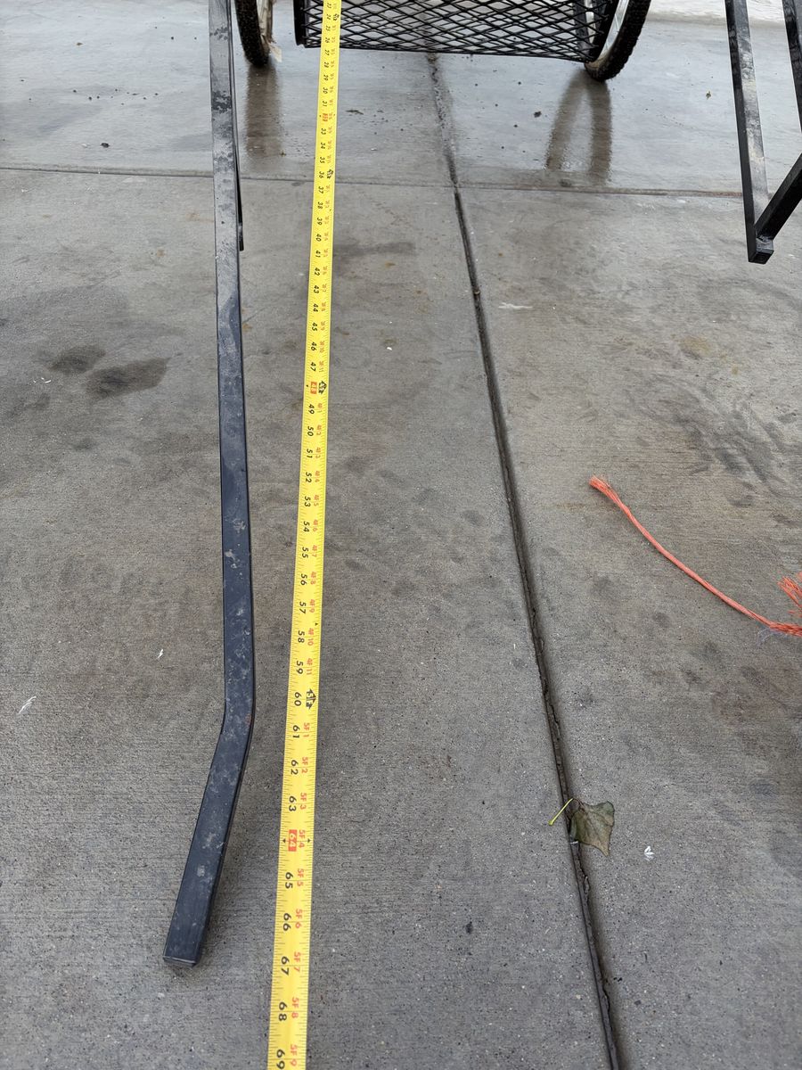 Measurements:• Shaft length: 67"• Width at front (narrowest): 21"• Width at rear (widest): 36"