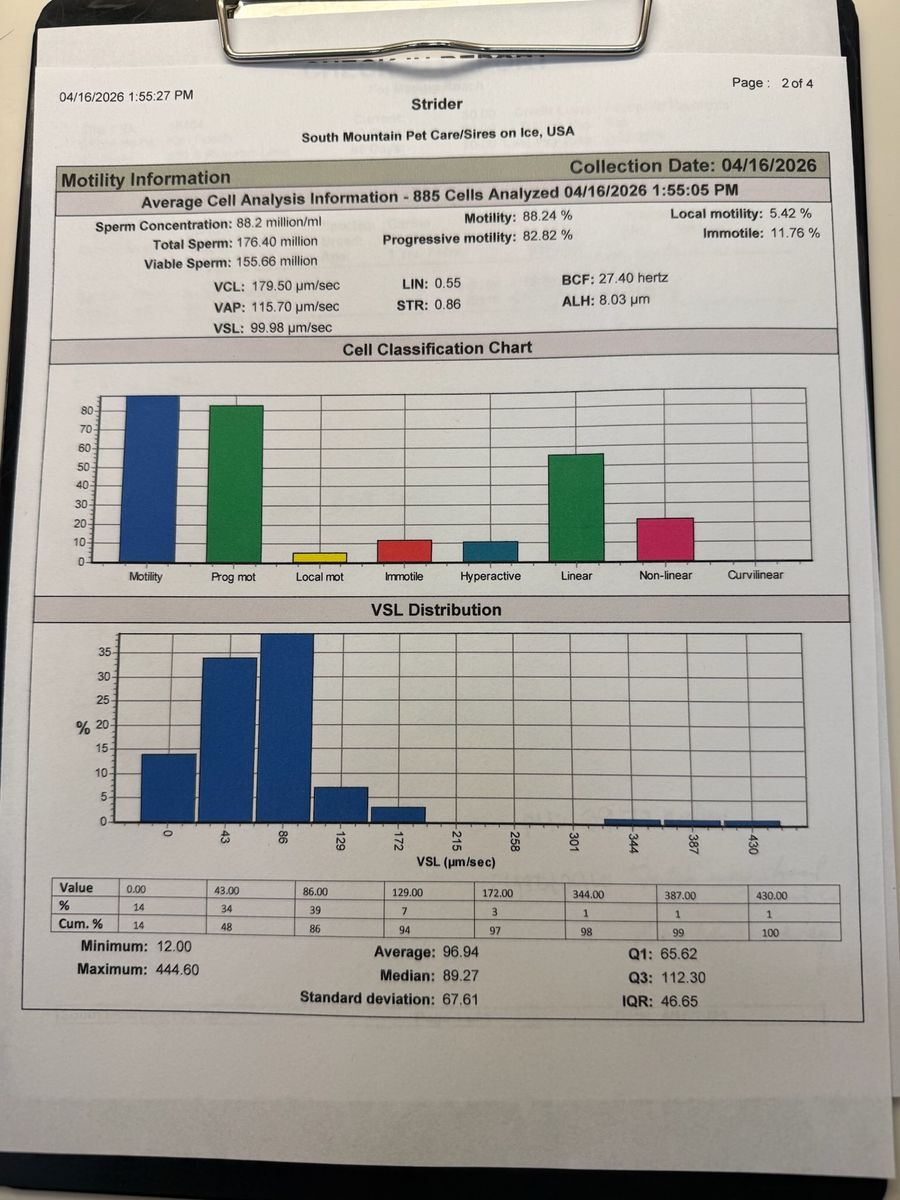 Breeding process: • Artificial Insemination (AI) available onsite (we are experienced and offer 2 AIs included in the stud fee). We also offer an optional 3rd AI for $200. • Transcervical Insemination (TCI) available at South Mountain Pet Clinic or Utah Reproduction.