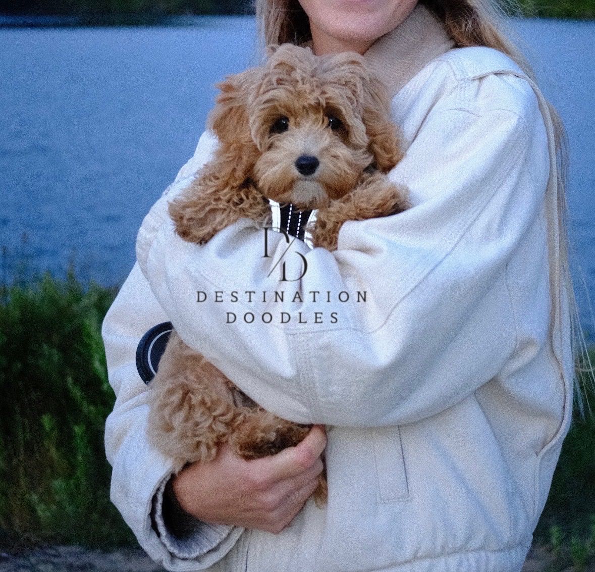 Introducing our newest F1b micro cavapoo stud, STRIDER! He is the son of our popular toy poodle stud, Bo. He weighs 5lbs, he’s fully furnished (meaning he can breed to any female and puppies won’t shed), and he has a unique +/- WAVY coat! He also carries Bb meaning he can produce cute brown noses as well as green/yellow/blue eyed puppies when paired with certain females. He’s amazing and has the sweetest, calm temperament.