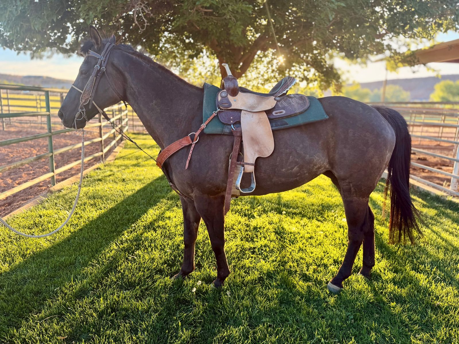 Gracie is an approximately 15-hand grade Quarter Horse mare with a solid, real-world resume. Before we purchased her, she spent two years as a dependable ranch horse, roping, sorting, and doctoring hundreds of cattle. She’s the kind that shows up every day—quiet, honest, and ready to work.