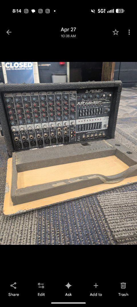 This powered mixer is in pristine condition with the original front and back cover . Key Features and Specifications: Channels: 8 input channels total, typically featuring 6 mic/line channels and 2 dedicated stereo channels (channels 7-9). Power: 400 Watts total power (2 x 200W), making it suitable for smaller PA applications. Effects: 16-bit, Deltafex™ DSP-based stereo reverb/effects with dedicated send controls. EQ & Monitoring: Two 9-band graphic EQs, with a "Feedback Ferret" automatic feedback reduction system on some models (XR684F). Channel Controls: 3-band EQ, monitor send, effects send, and gain/pad controls. Flexibility: Can operate as a stereo mixer or in Main/Monitor mode, allowing one amp for monitors and the other for mains.