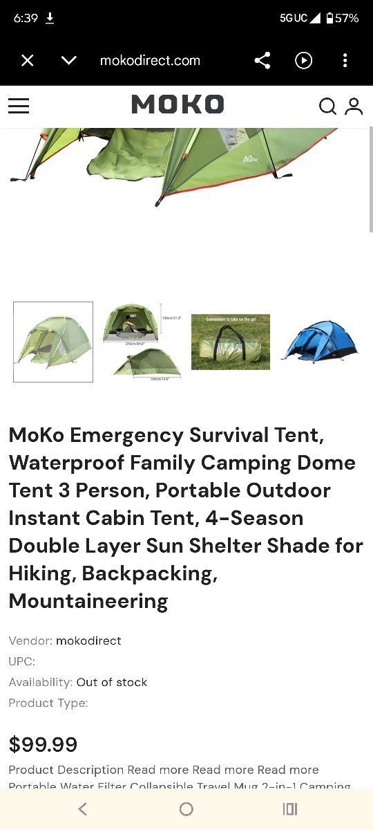 Up for sale an awesome Moko emergency survival dome tent 3 person ... is a little bit dusty , very good conditions . call or text 8019704431 thanks!