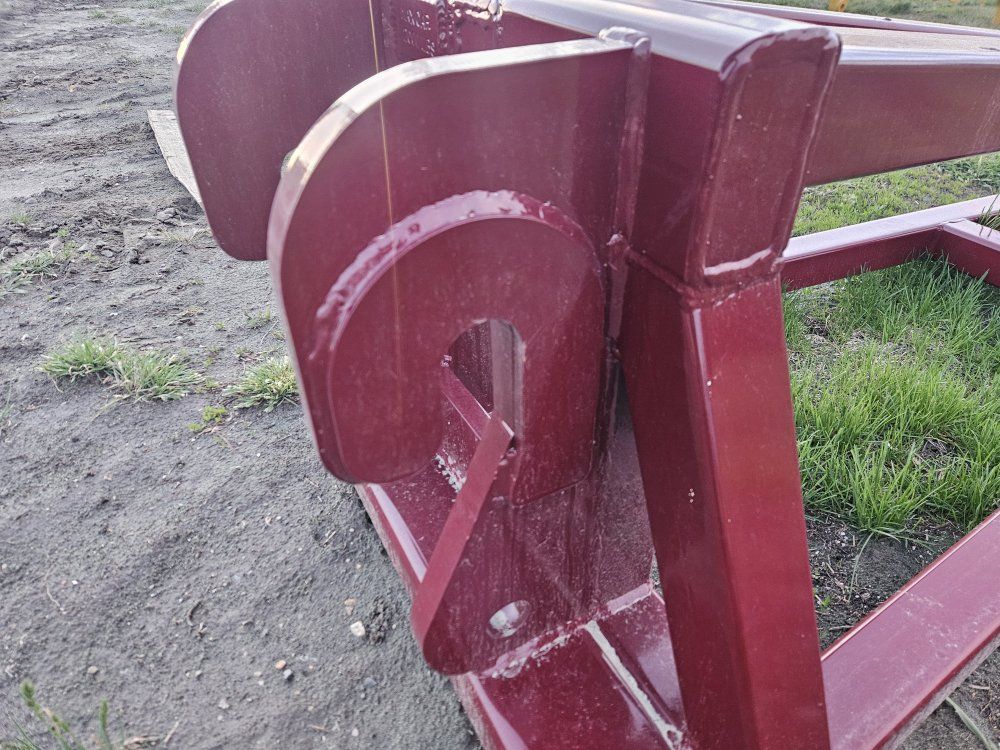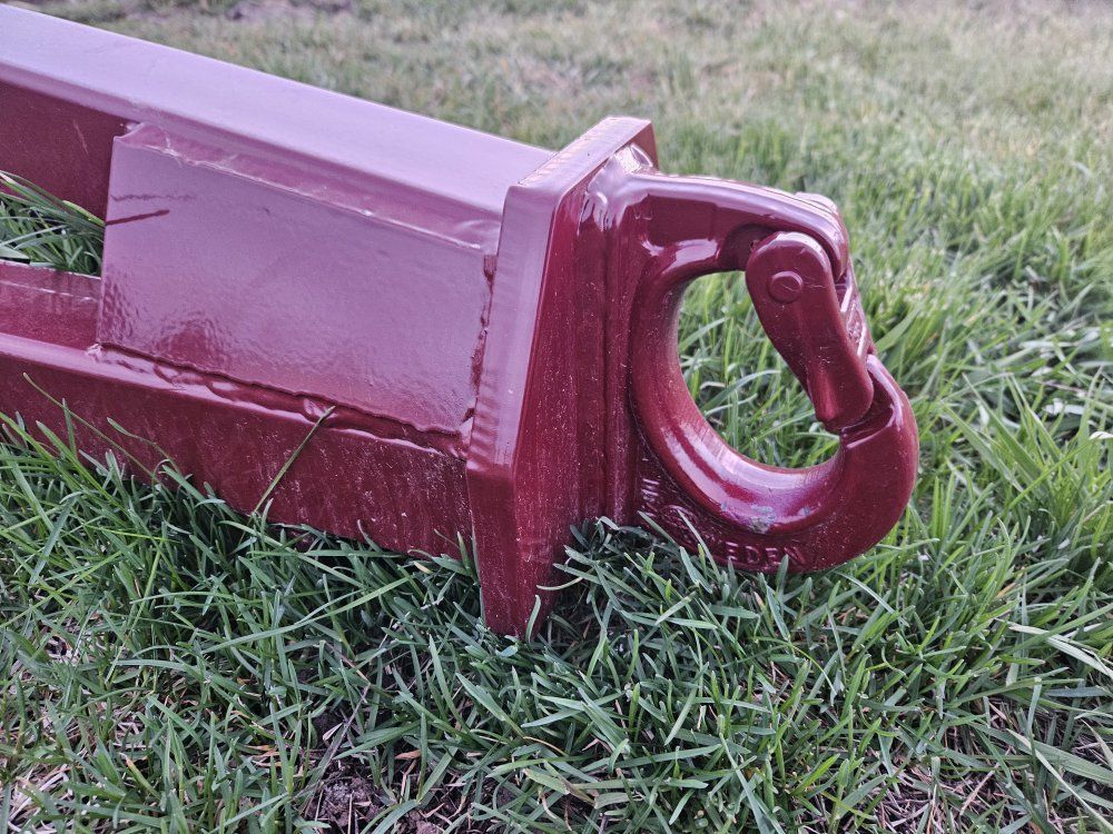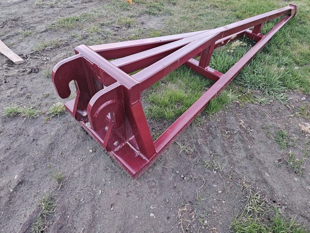 I have this 12ft SkyTrak forklift jib for sale. It is brand new and is extremely heavy duty. It was sand blasted and powder coated for a durable long lasting coating. The coupler ears are 1-1/4" Thick with a 1/2" reinforcement gusset, as shown in pictures. (making the ears 1-3/4" thick) The hook is a Gunnebo UKN-8 weld on hook that is rated at 8 tons The jib is stamped with a rating of 2000lbs but is capable of lifting way more than that. The main structure is made of 3"x 3" x 3/16" thick steel square tube. Distance between ears is 12-1/2" and couples nicely to reach lifts with the SkyTrak coupler.