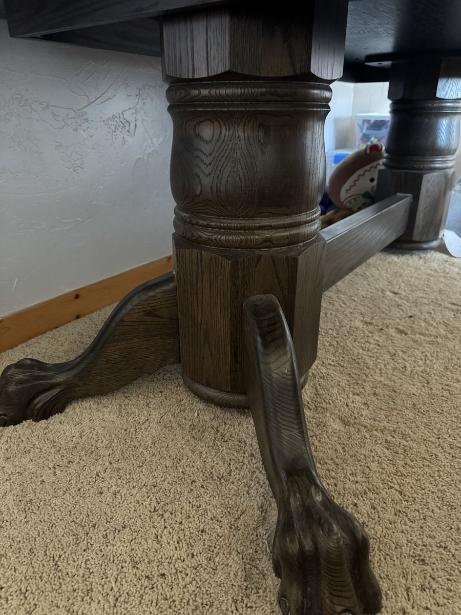 VenmoCustom high end poker table made of solid hard wood. These tables retail for around $9000.00. The felt is custom and can be re-felted by the manufacturer.