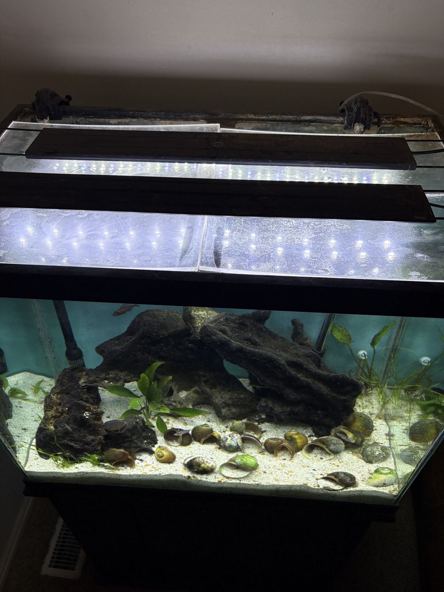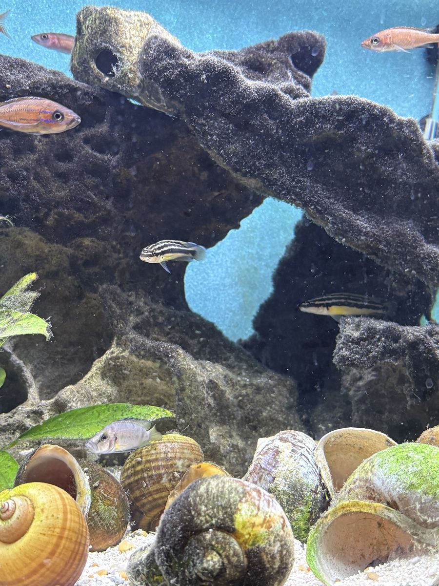 ApplePay55 Gallon Tanganyikan Glass Show Tank aquarium fully stocked! Sunsun canister filter, heater, substrate, lace rock, apple snail shells, many live plants, 2 LED lights, and multi generation Tanganikin Cichlids including Blue Neon Paracips, Julidochromis Transcriptus, and Sumbu Dwarf Comprecciceps. No leaks. Moving must go! $200 obo
