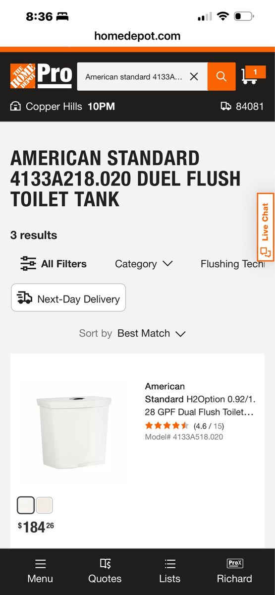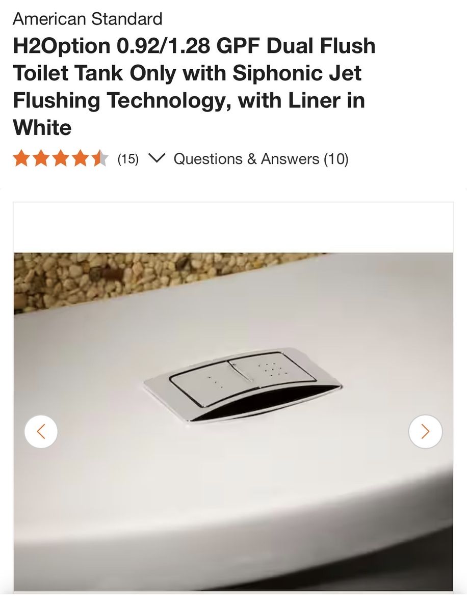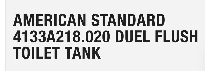 VenmoAmerican Standard Dual Flush Toilet Tank. Does NOT include toilet bowl. New in box, no damage. I bought the wrong one from an auction and cannot return it.