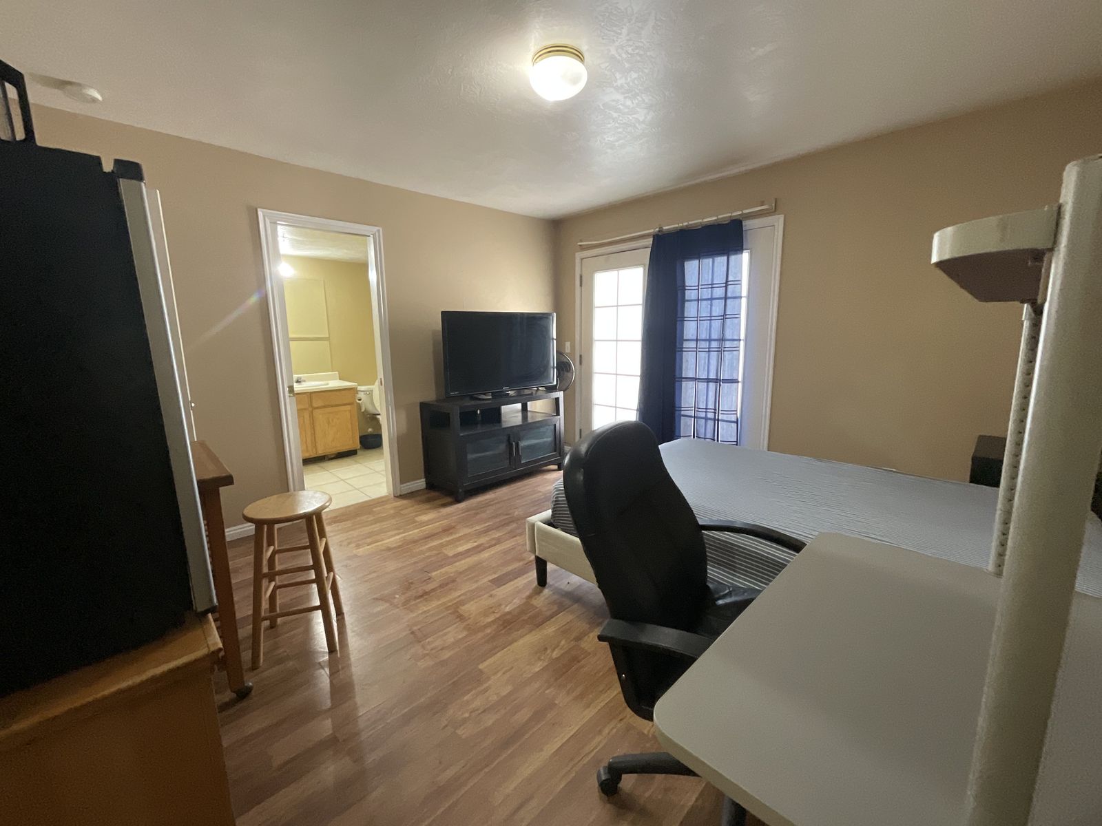 ZelleStudio-Style Master Bedroom in Quiet Townhome – Furnished + Balcony Spacious master bedroom designed to function like a private studio apartment, located on the second floor of a quiet three-story townhouse. Perfect for someone seeking privacy and a peaceful living environment. The unit includes a private kitchenette equipped with a mini fridge, microwave, and induction cooktop, along with a large private bathroom and walk-in closet. Enjoy your own private balcony overlooking a serene community courtyard. The home features three additional studio-style units, creating a calm, respectful, and low-traffic living space. A shared laundry room with a kitchen sink is available on-site for convenience. $50 monthly fee for all utilities and internet $800 refundable security deposit Features: Fully furnished (as pictured) Private bathroom + walk-in closet Private balcony Kitchenette with essentials Shared laundry Quiet townhouse setting Garage parking available Close to public transportation Ideal for a single tenant looking for a comfortable, private, and move-in-ready space.