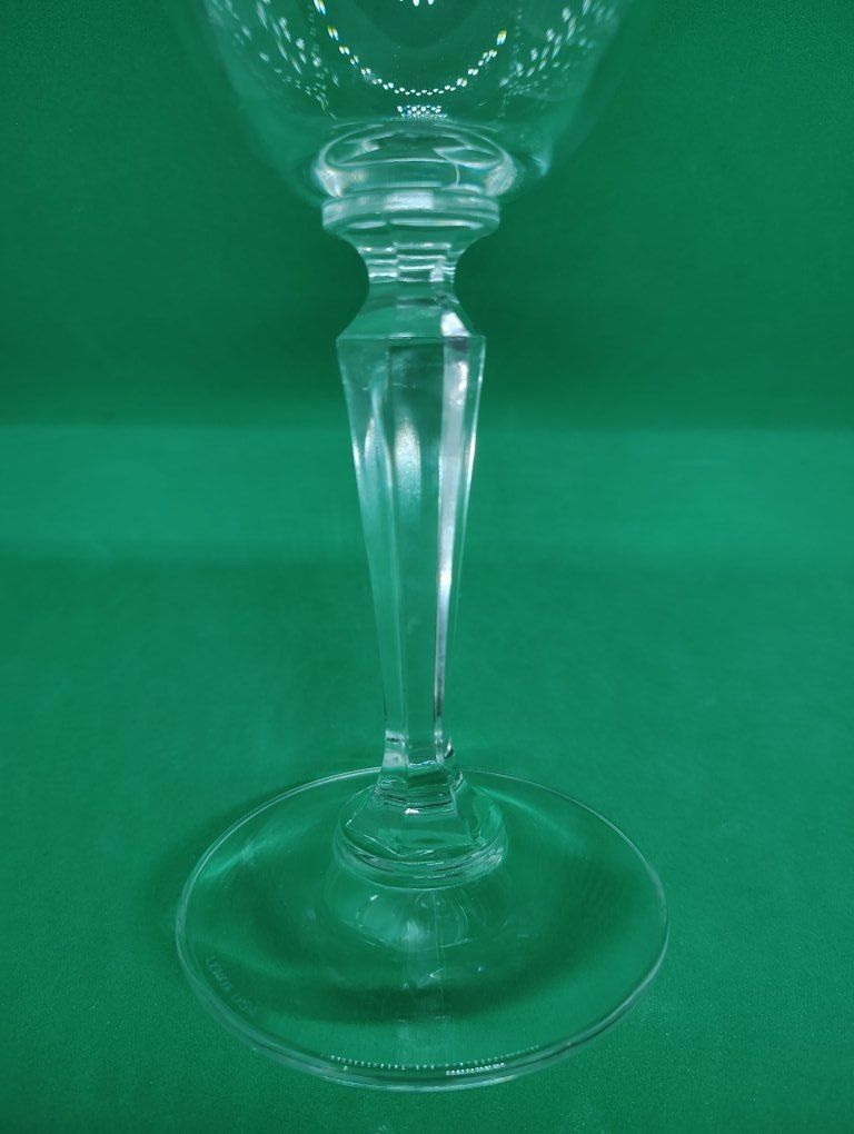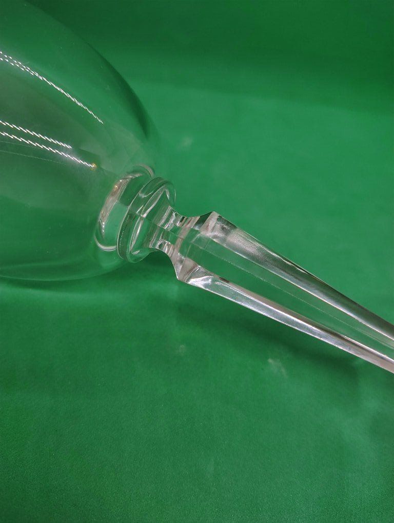 6 Lenox Decor Plain water goblets. This discontinued design is characterized by a smooth, unetched bowl and a distinctive multisided, faceted stem. Pattern Name: Decor Plain Key Features: Multisided faceted stem, smooth clear bowl, and a textured foot. Measurements: Approximately 7.5 inches in height and 2 3/4 inches in diameter.