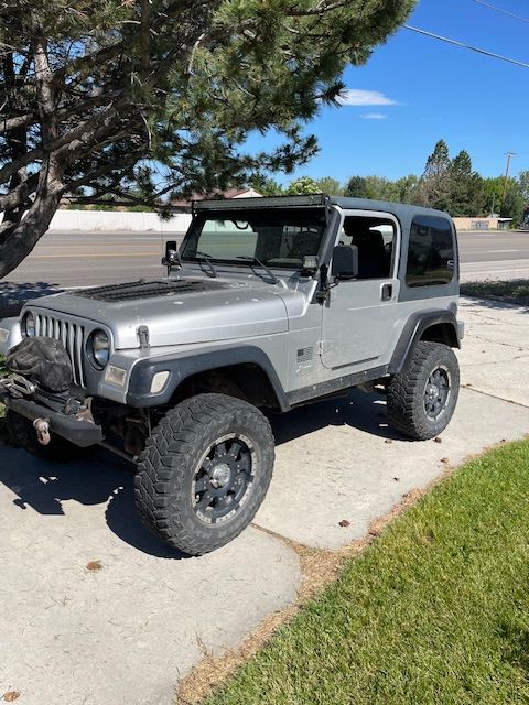 Zelle$12,500 OBO-Its a 2 door- Silver w/ blk trim and hard top. Has a LED light bar, wench and stereo box behind the seats. 4.0 ltr w/ 5 speed manual transmission-93,000 miles. This Jeep is great fun. It is built for the mountains and It is ready for fun in the sun as well as any Hunting trips. Come look for yourself. Restored Title. Would trade for a nice Camp Trailer