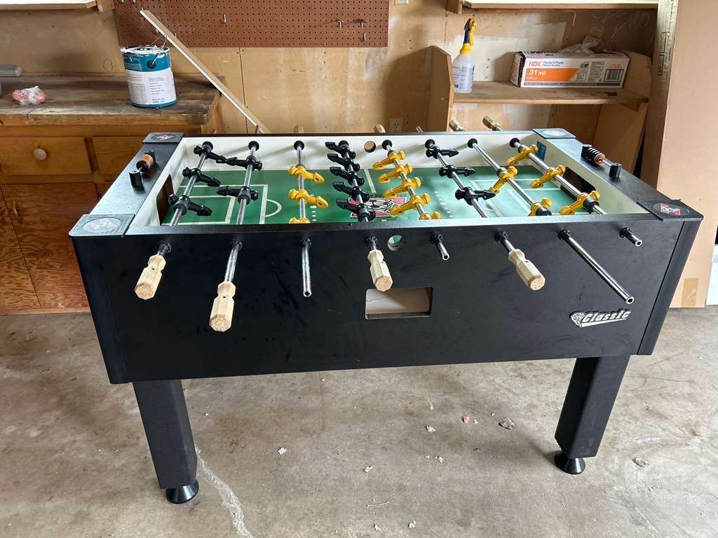 VenmoThat’s my Foosball table for sale. I never used so I’m selling because I need space. Dimensions and weight: Length: 56 inches Width: 30 inches Height: 36 inches Weight: 225 pounds $950 OBO (free delivery over 50 miles) Orem-UT