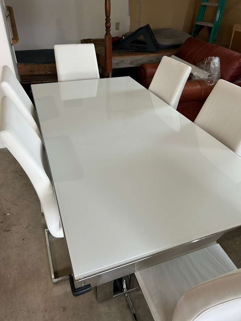 ZelleModern Glass Dining Table Set – 6 Chairs – Excellent Condition