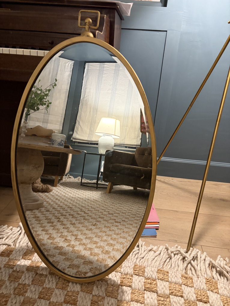 Gold frame oval mirror 18.5 x 35 including the cap piece at the top