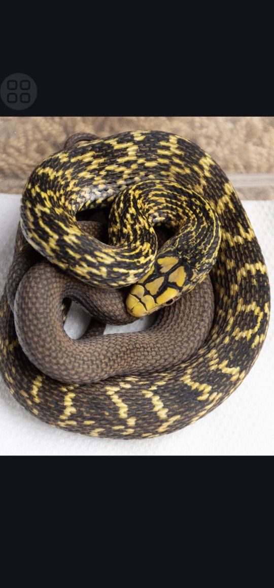 ZelleBeautiful colored Chinese King Rat Snake. lots of high yellows with dark green and jet black tail.Handles well and is a powerhouse eater.Will ship to FedEx hub.