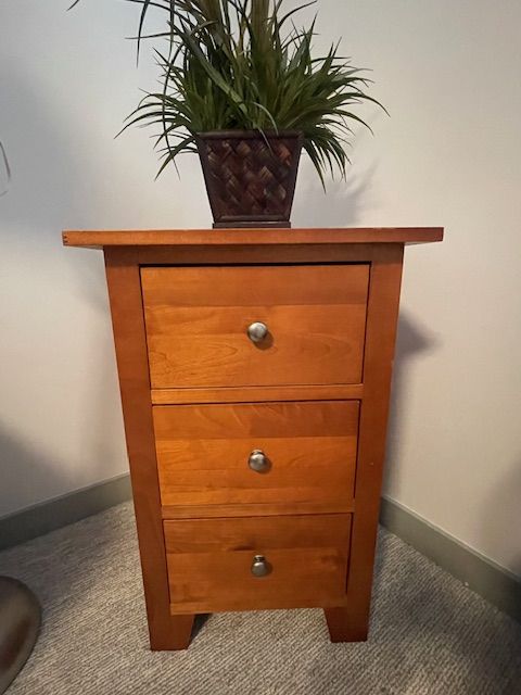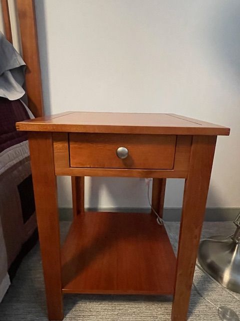 VenmoQueen Size Bed frame (mattress/boxspring not included) with 2 night stands and a small dresser stand
