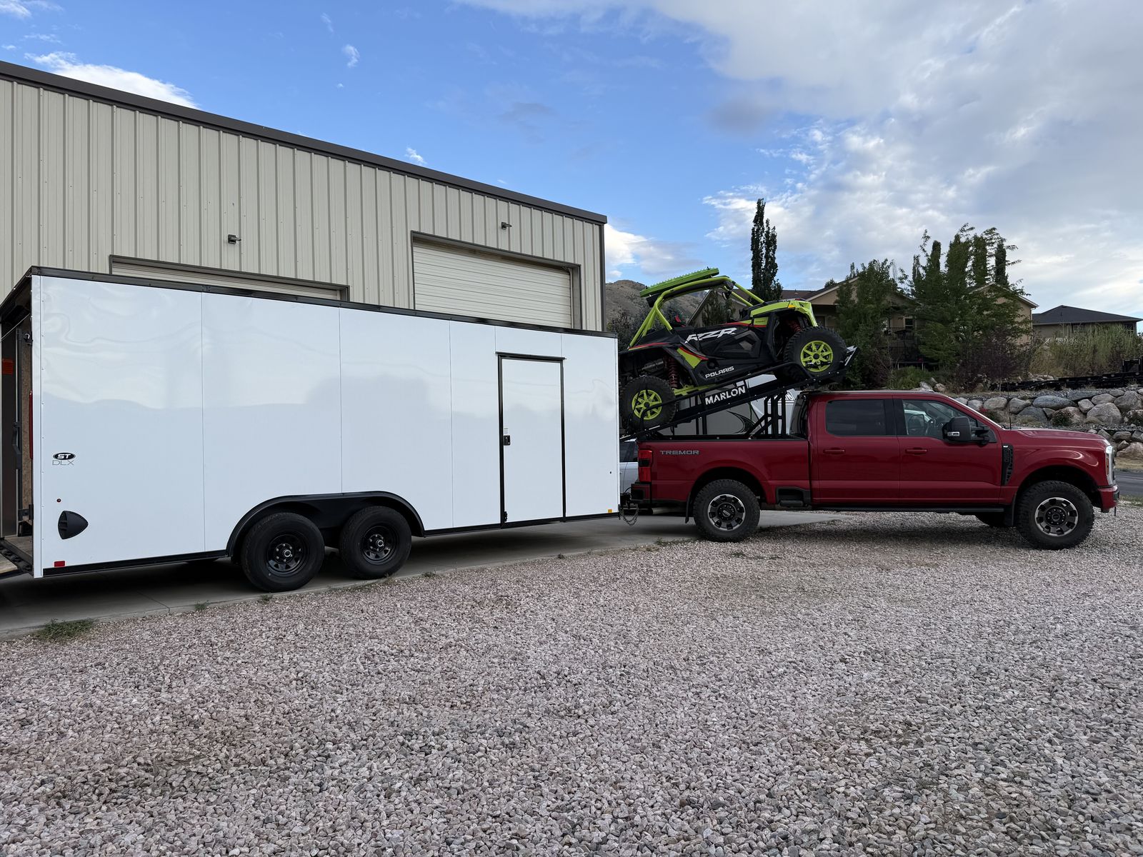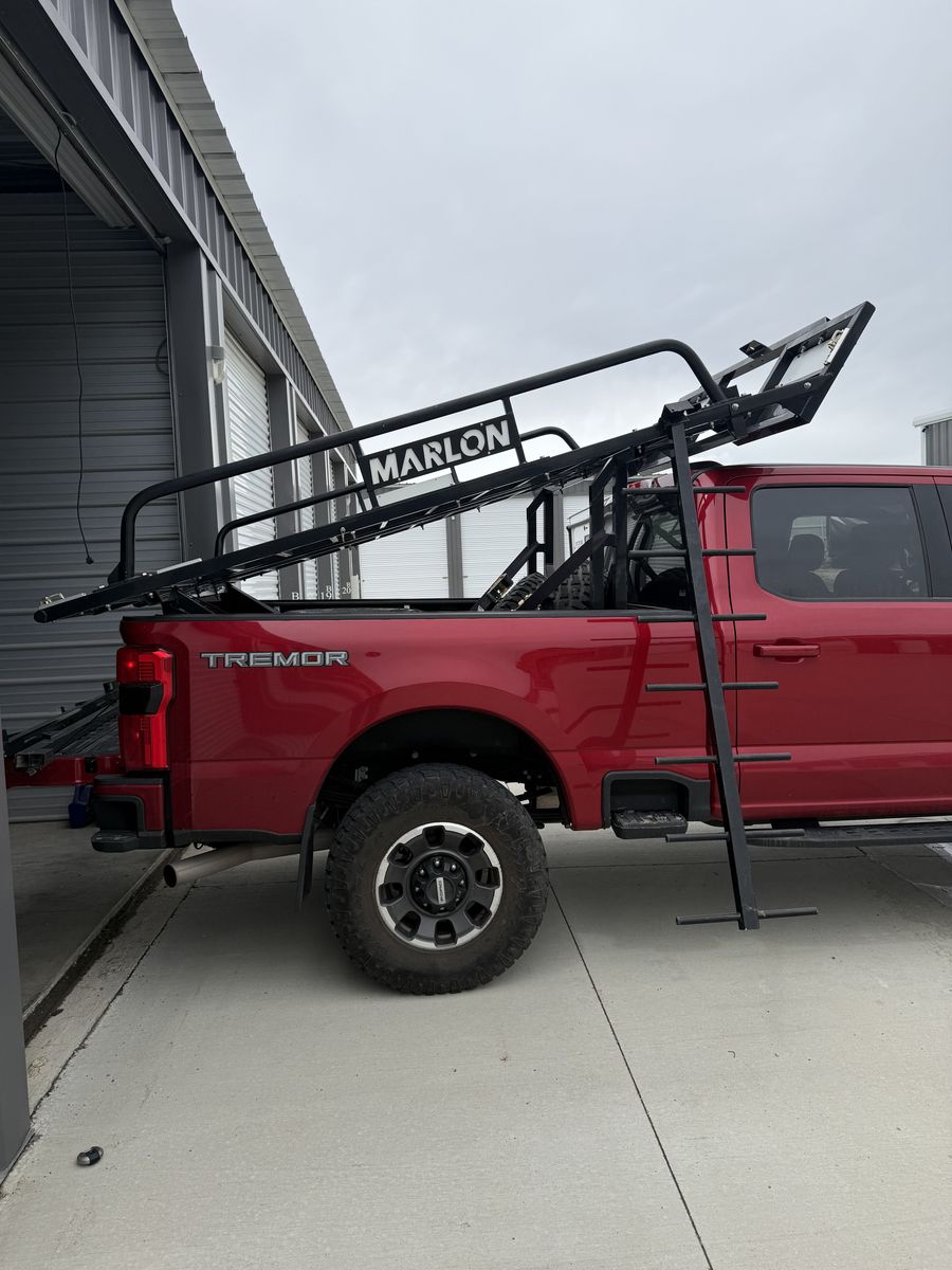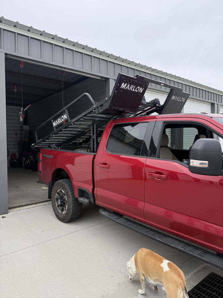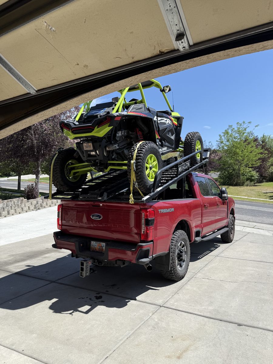 Transform your off-road adventures with the Marlon SXS Deck, designed for truck boxes 6.2' to 8'. This innovative deck includes two 10' ramps and a side loader assist for easy loading and unloading of your Side-by-Side or ATV. Tackle rugged terrain confidently and carry an extra machine or tow a trailer.
