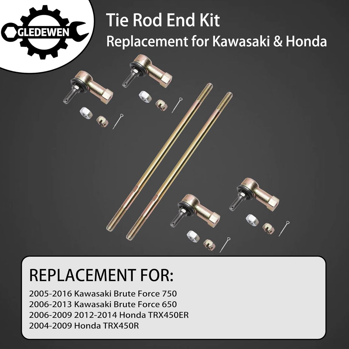 ApplePayTie Rod End Kit, Compatible With 2005-2016 Kawasaki Brute Force 750,06-13 Kawasaki Brute Force 650,06-14 Honda TRX450ER,04-09 Honda TRX450R Ball Joint ATV UTV Accessories