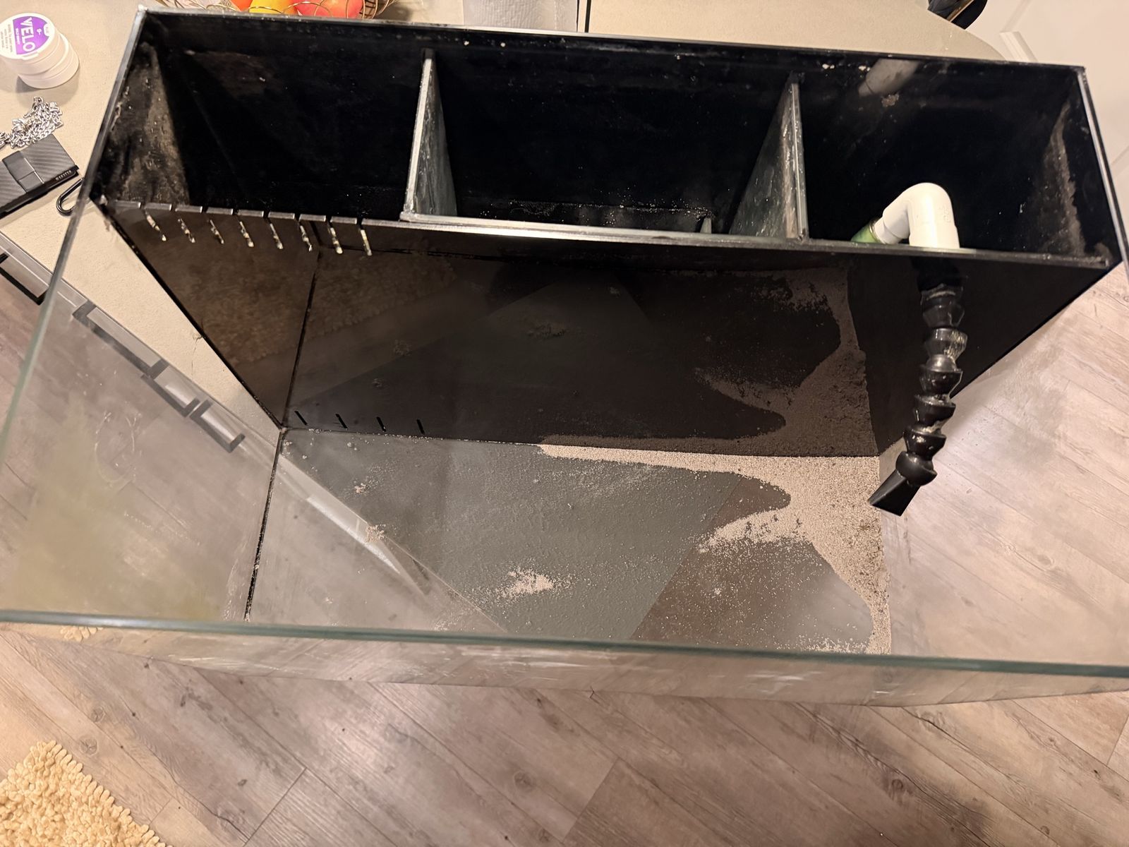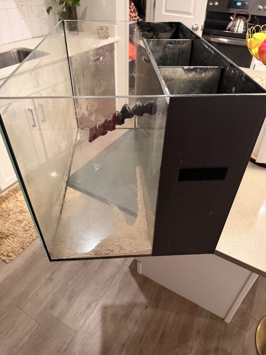 CashApp25 gallon all in one fish tank. Has 3 large back compartments for filters, media, carbon, bio balls etc. needs a good cleaning and it’s going to look great. It has no scratches or cracks. Comes with pump.