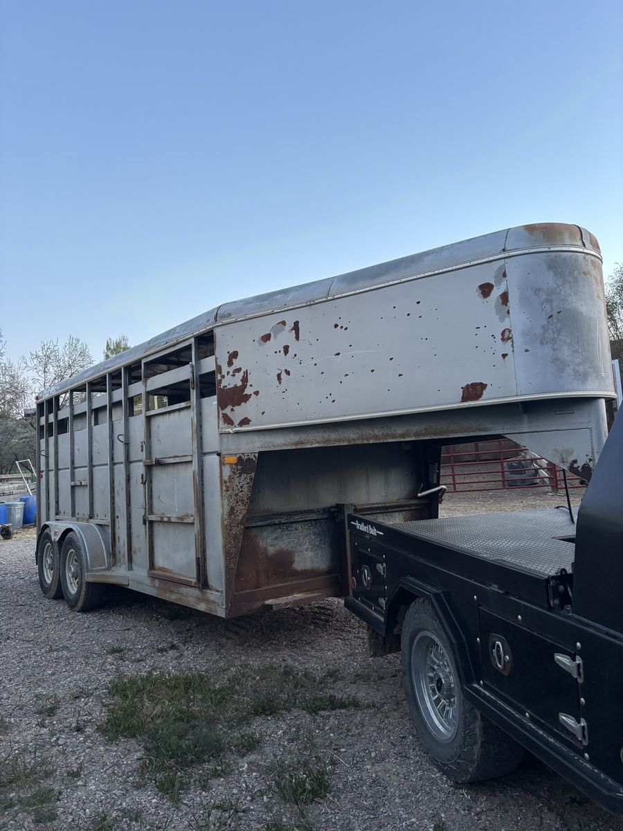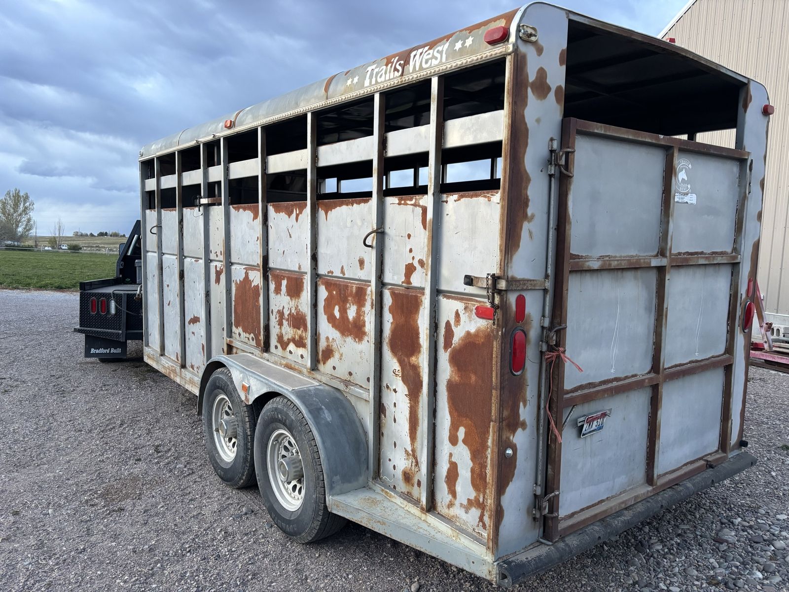 Venmo16 foot TrailsWest stock trailer. Cattle baron model. Pulls really well has heavy duty 8 lug torsion axles wheels and tires are in great shape. Floor is sturdy and well built wood is in good condition has floor mats 16X7 stock area can fit 5 horses. The nose are is plenty big to throw few saddles. No tack is included. Wiring and brakes work. I have pulled it a lot with an Chevy 350 gas truck and it pulls it good as well. $6,800 or best offer.
