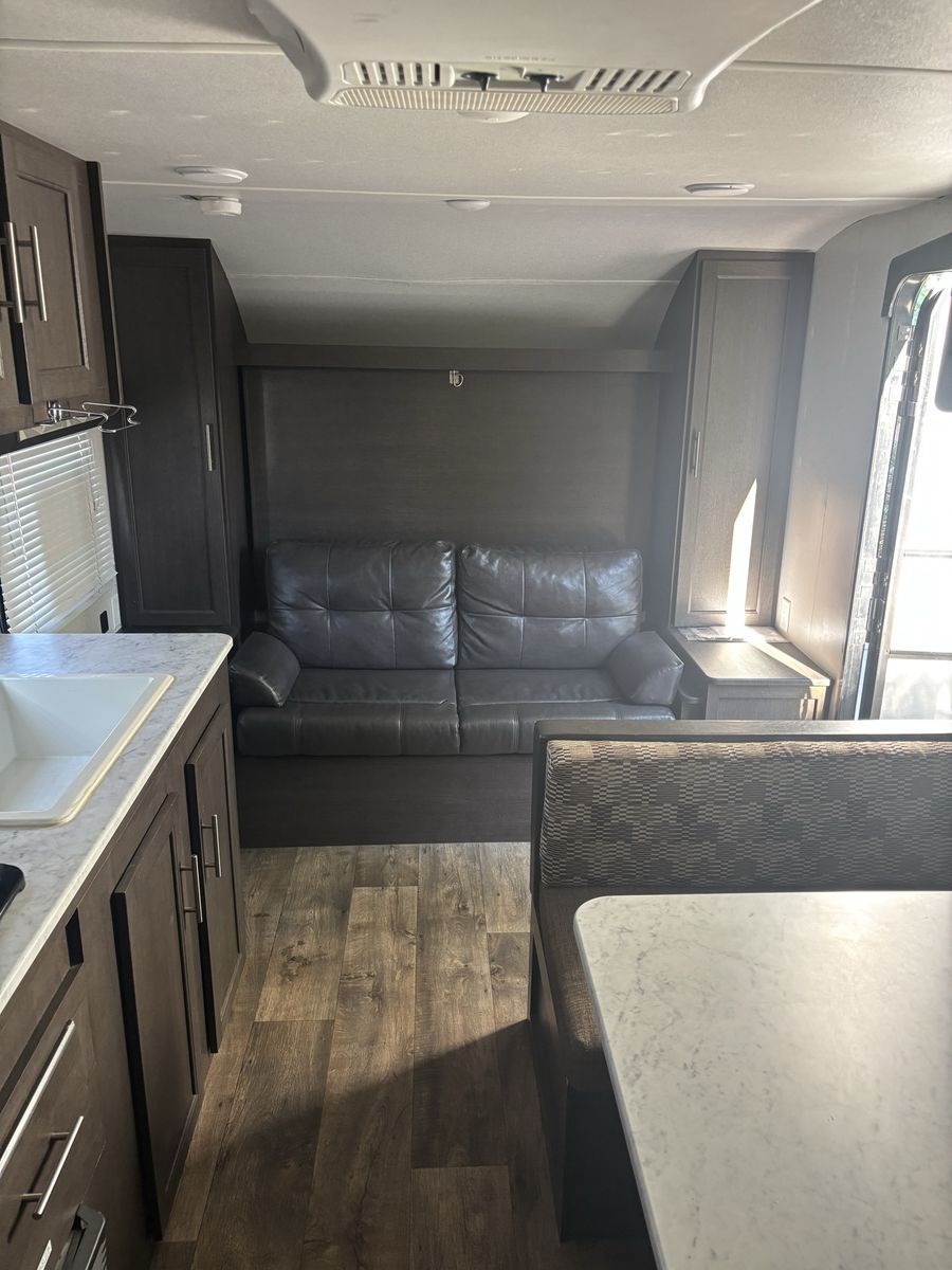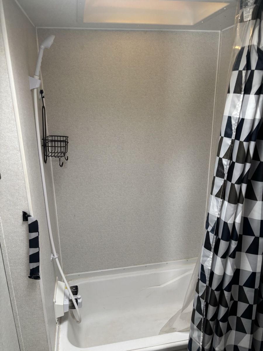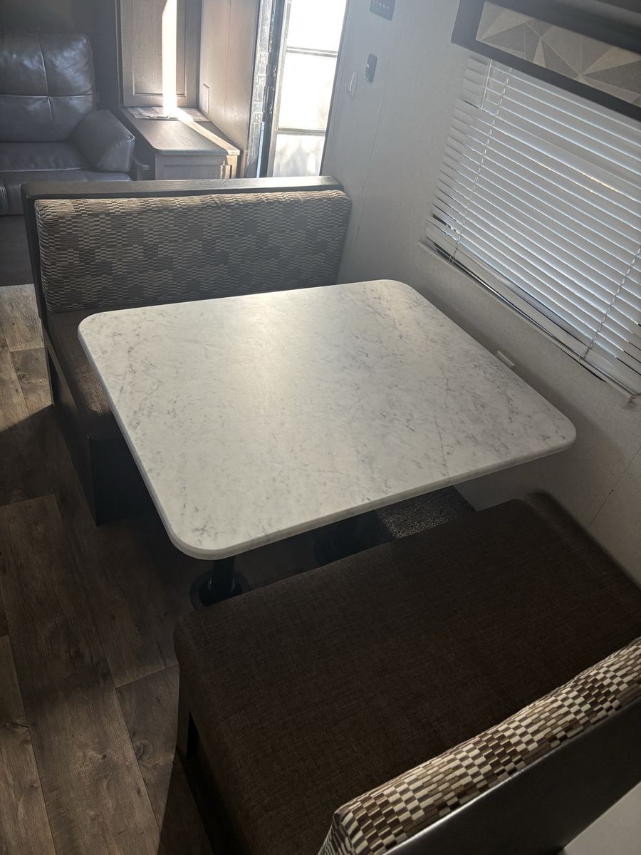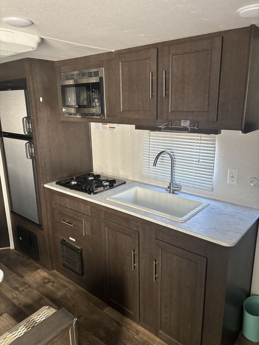 Features include a functional kitchen with stove, microwave, and fridge, a comfortable sleeping area, and plenty of storage throughout. Equipped with A/C and heat. Easy to tow and set up. The interior is clean with no major wear, and all major systems are working as they should. Exterior is in good condition as well Batteries will need to be replaced but everything works when connected to power. Comes with everything show in pictures.