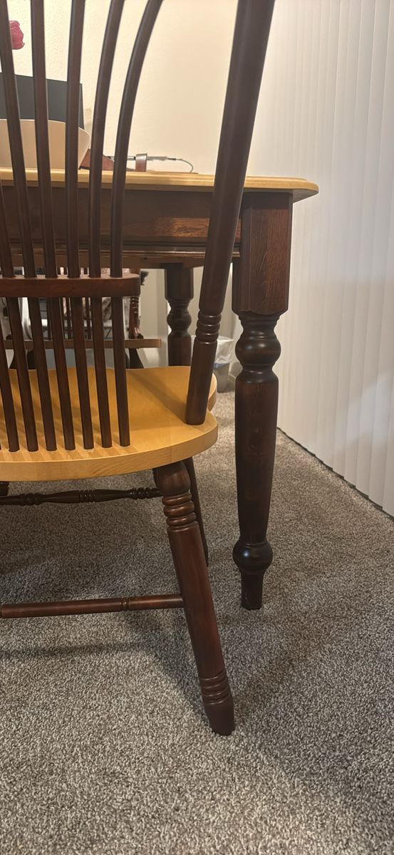 Lovely table set but I moved and can no longer fit it in my smaller dining area, unfortunately.