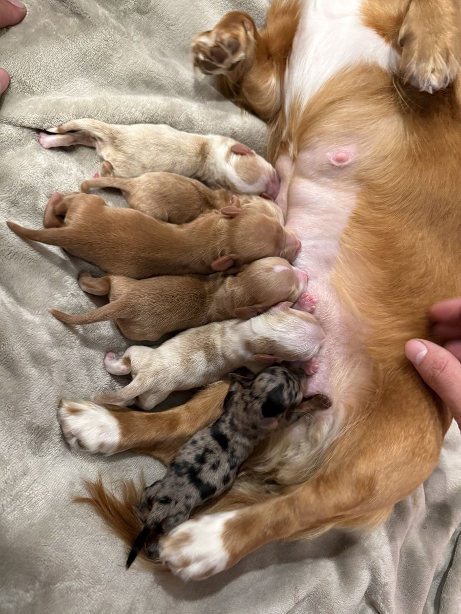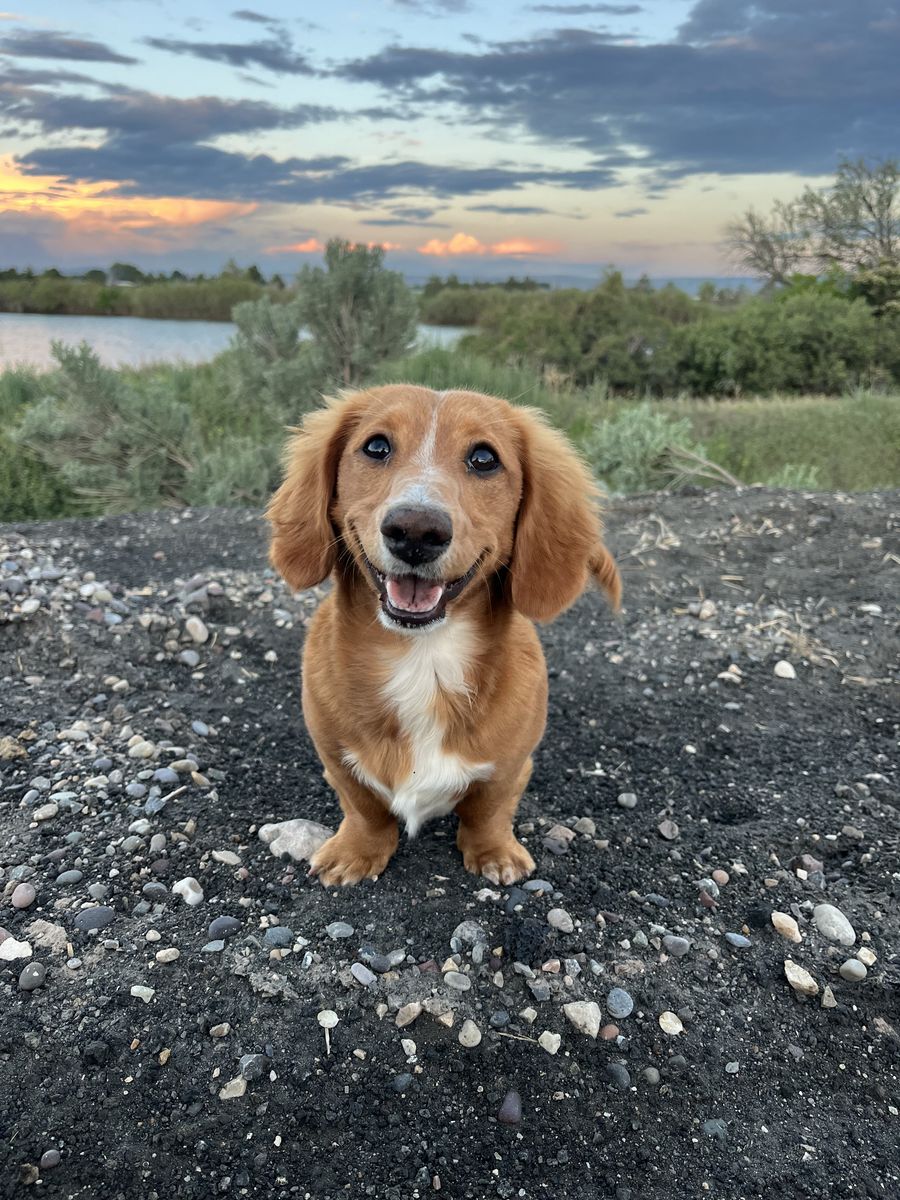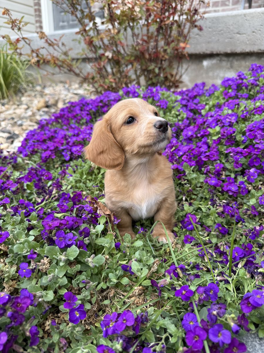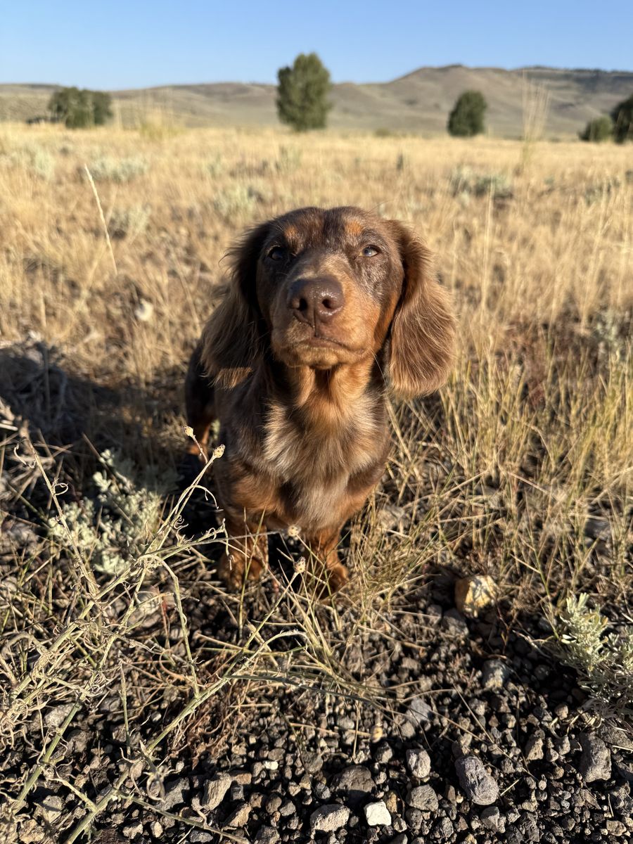 We have 1 more super pIayful cuddly mini longhaired dachshund left. we own both the stud and the female they are purebred not paper. Spud is the stud. He is 10 pound mini long-haired dachshund. And tater is the female and she is 14 pound mini long-haired dachshund. Spud loves to be outside chase cows, play with his toys, and cuddle. tater enjoys playing fetch, paddle boarding, and also anything outside. The prices are based off of color and gender.