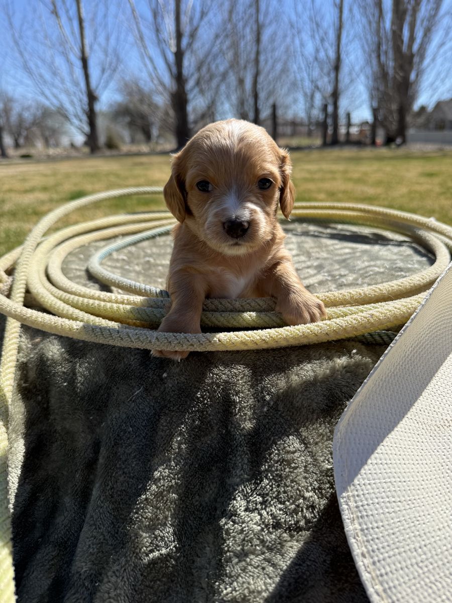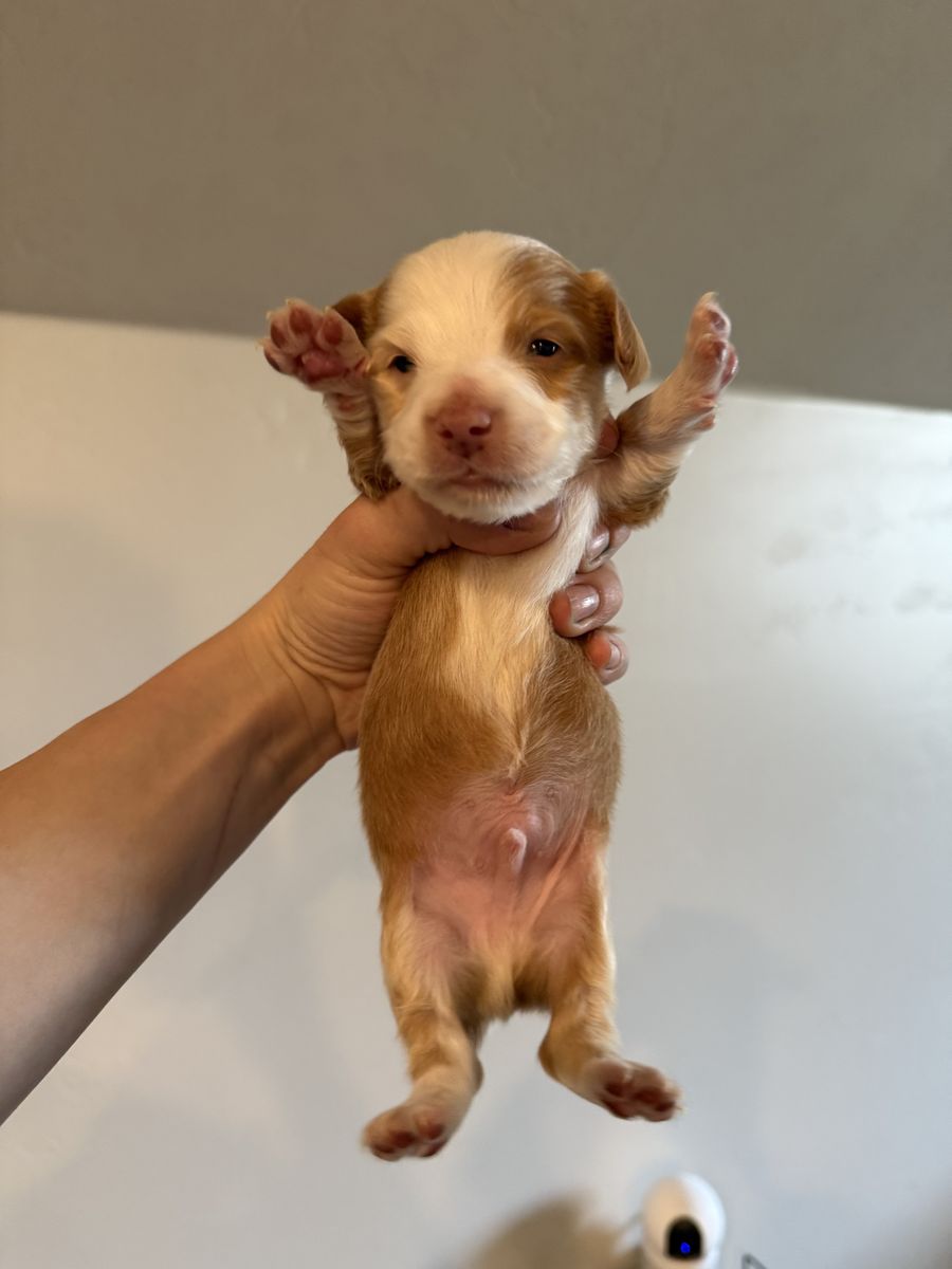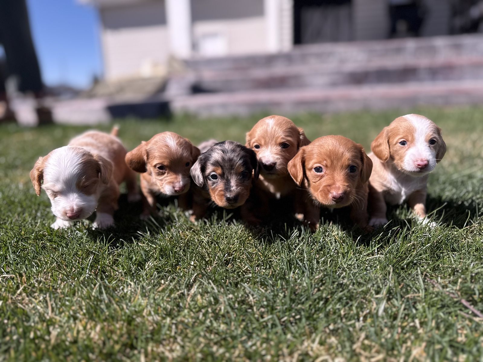 We have 1 more super pIayful cuddly mini longhaired dachshund left. we own both the stud and the female they are purebred not paper. Spud is the stud. He is 10 pound mini long-haired dachshund. And tater is the female and she is 14 pound mini long-haired dachshund. Spud loves to be outside chase cows, play with his toys, and cuddle. tater enjoys playing fetch, paddle boarding, and also anything outside. The prices are based off of color and gender.