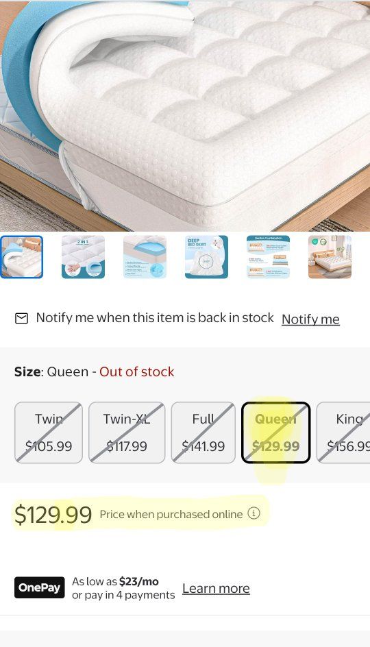 VenmoHigh-quality 2-in-1 mattress topper that combines a soft quilted pillow top with a supportive cooling gel memory foam layer. New, sealed in packaging!